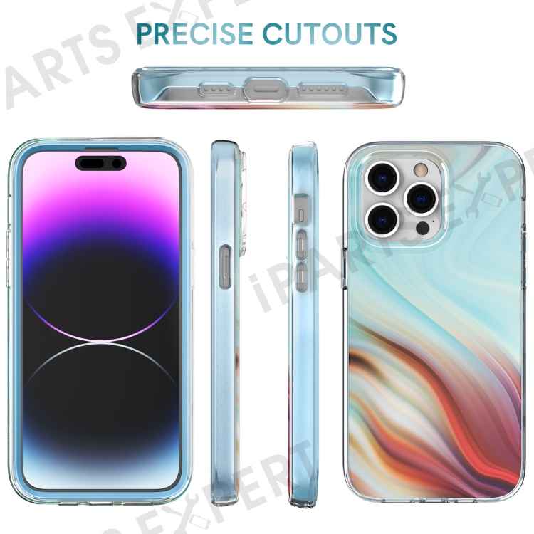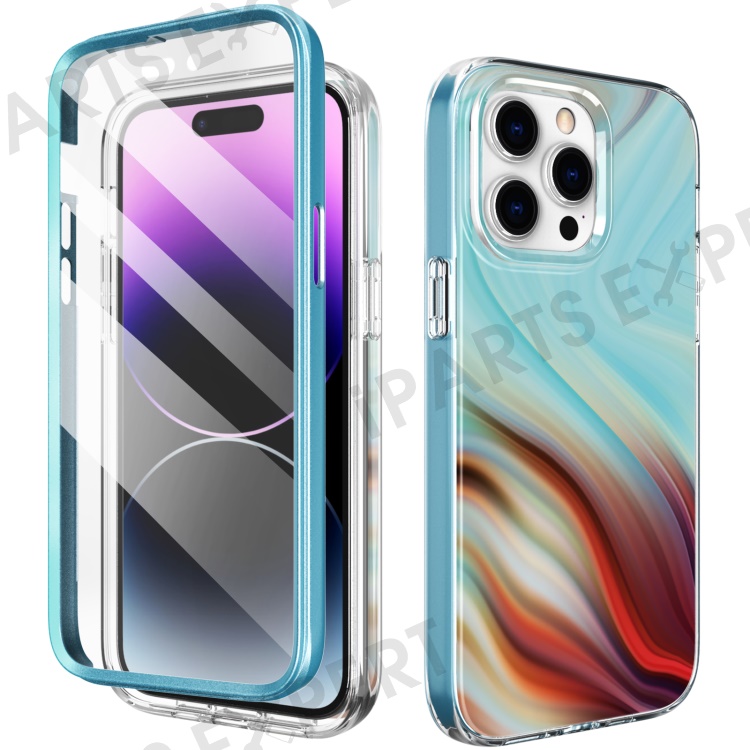 AHASTYLE WE13 For iPhone 14 Pro Max Case Pattern IMD PC+TPU Phone Cover Built-In Screen Protector - Colorful Waves