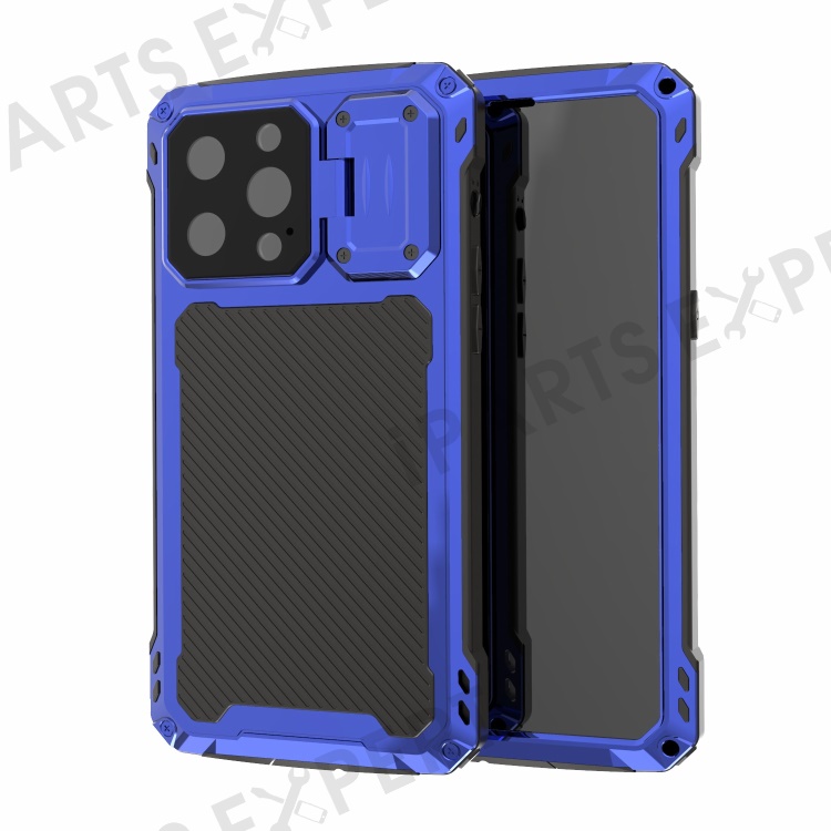 Aluminum Alloy+Silicone+PET Film Phone Case for iPhone 14 Pro Max Shockproof Cover with Lens Kickstand - Blue
