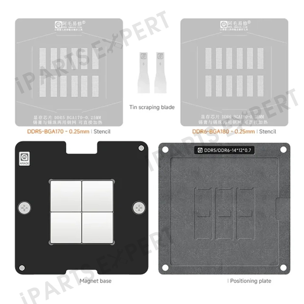 AMAOE DDR5 / DDR6 Tin Planting BAG Reballing Stencil Kit Graphics Card Memory Chip Repair Tool