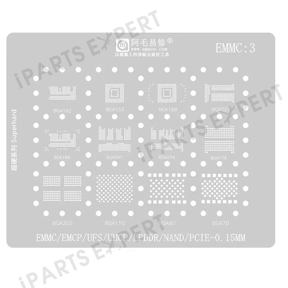 AMAOE EMMC3 BGA Reballing Stencil for BGA162 BGA153 BGA169 BGA221