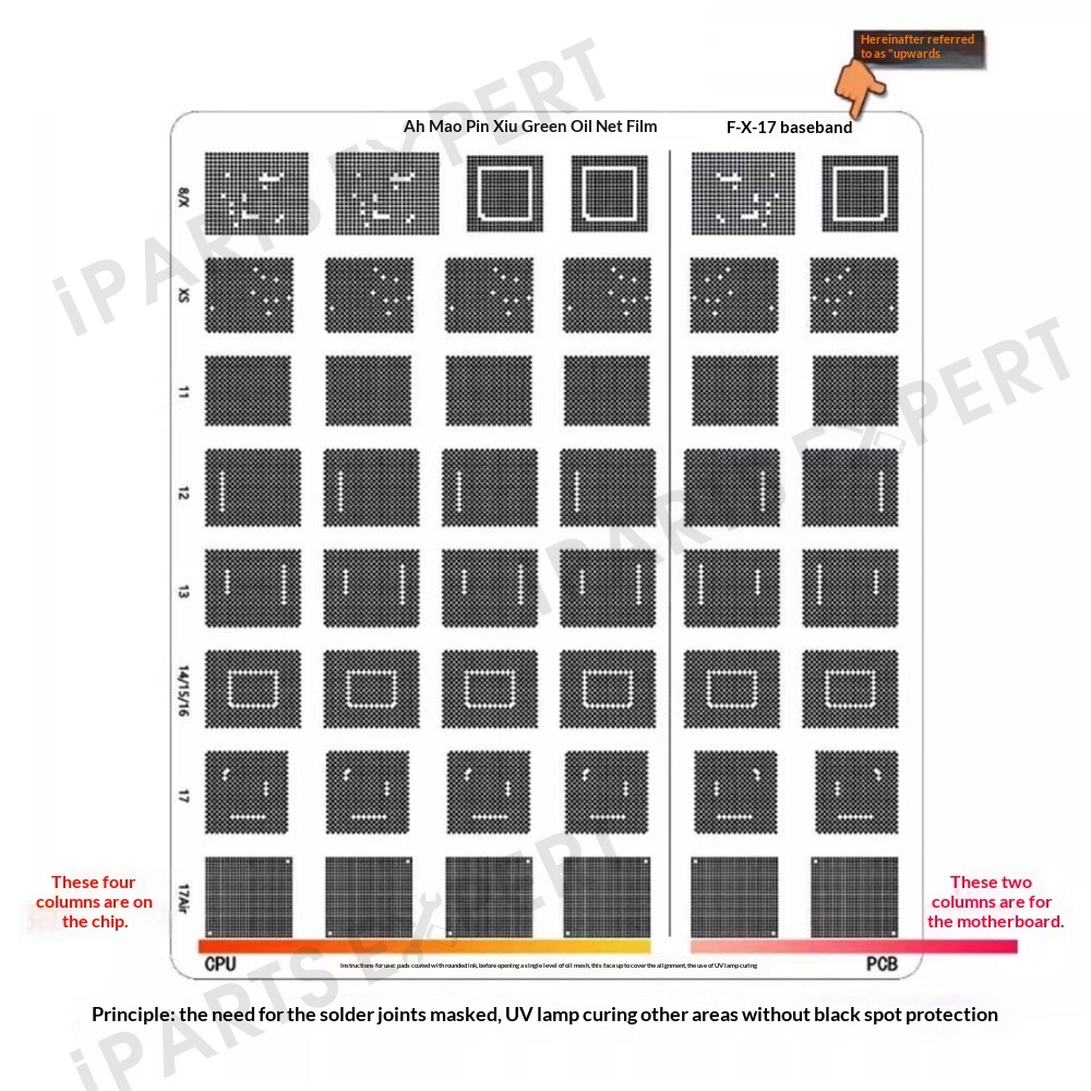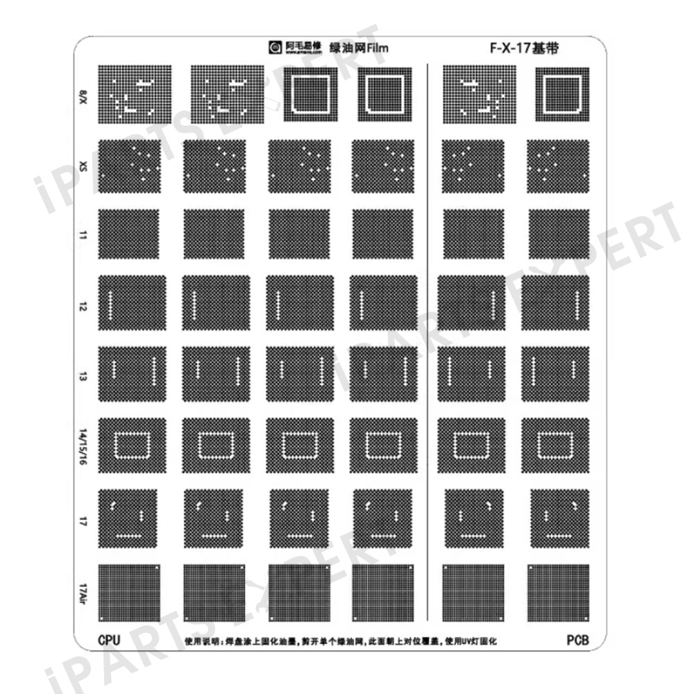 AMAOE Green Oil UV Stencil for iPhone Air / 16 / 15 / 14 / 13 / 12 / 11 / XS PCB IC Chip BGA Reballing
