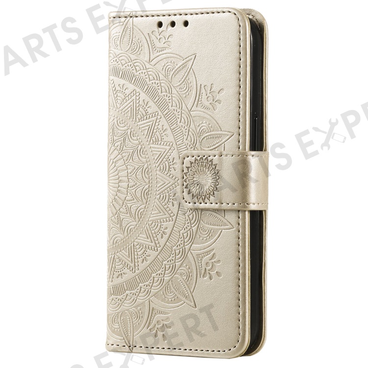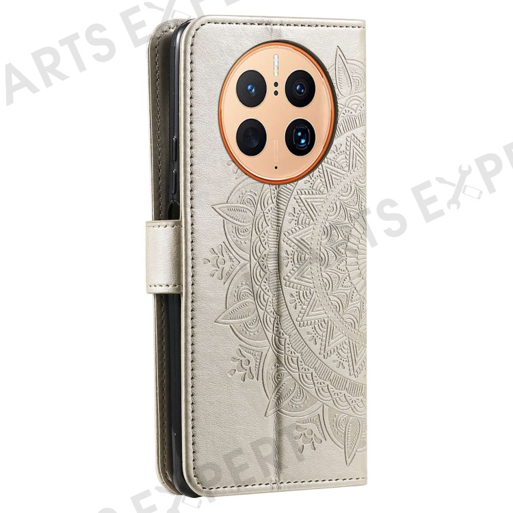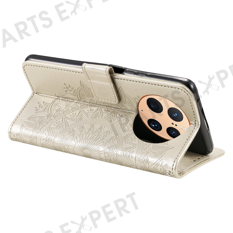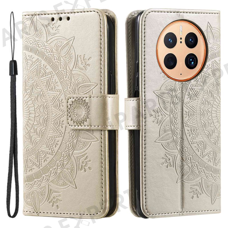 Anti-drop Cell Phone Cover For Huawei Mate 50 Pro 4G, Mandala Flower Pattern Imprinted PU Leather Flip Wallet Case Stand - Gold
