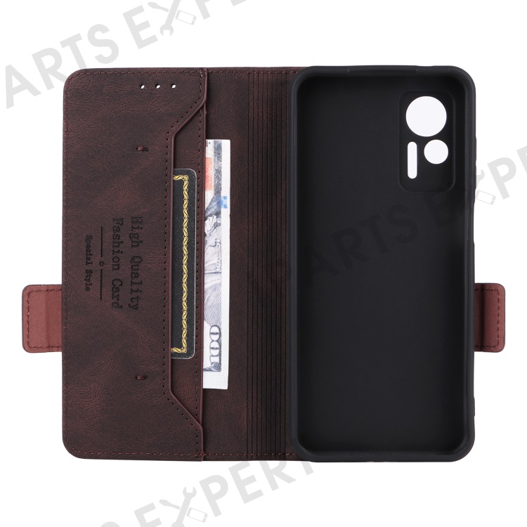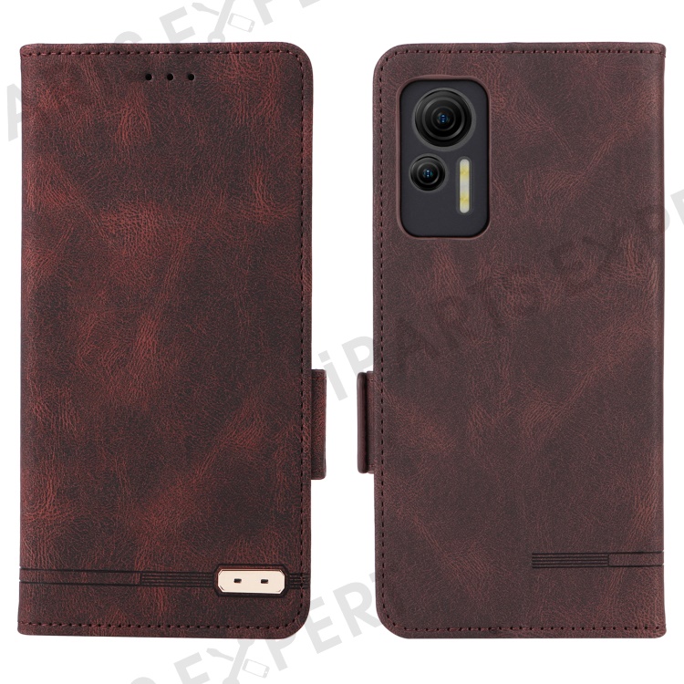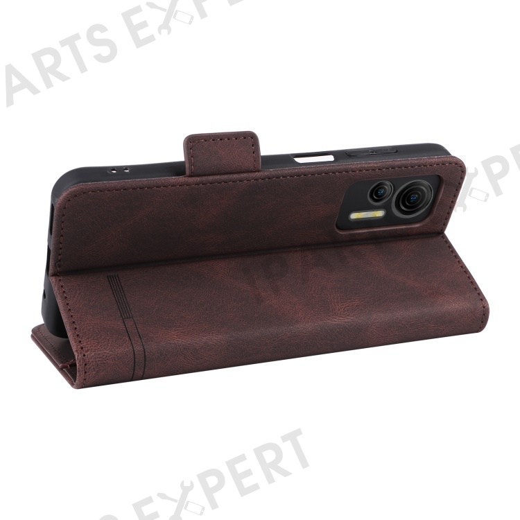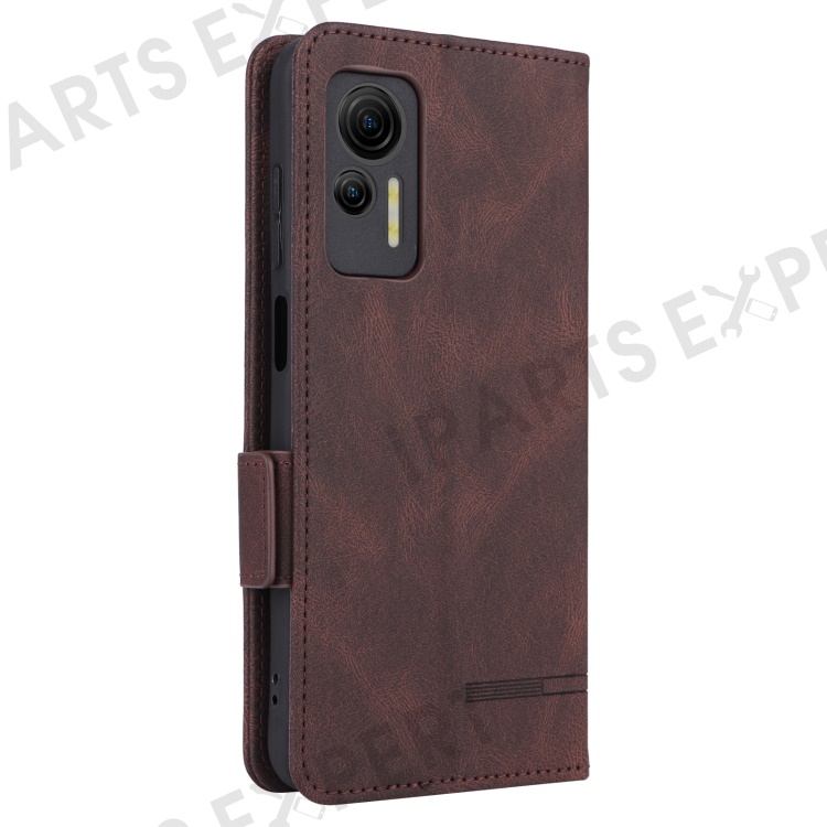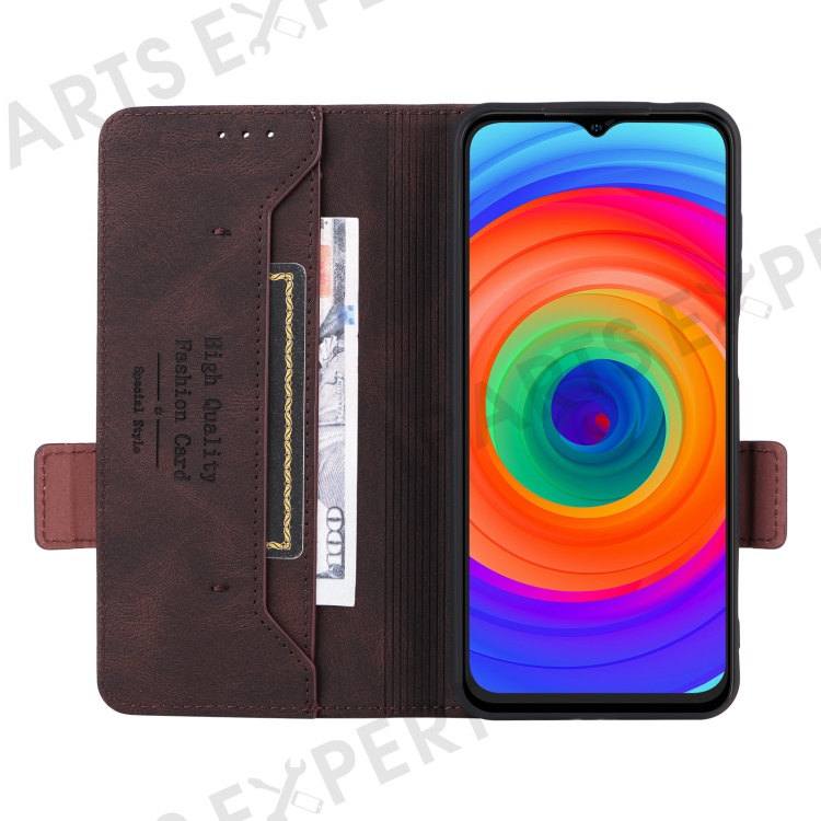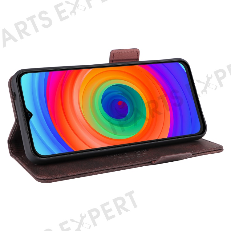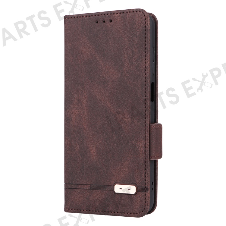 Anti-drop Phone Cover for Ulefone Note 14, Hardware Decor Dual Magnetic Clasp Wallet Foldable Stand PU Leather Protective Phone Case - Coffee