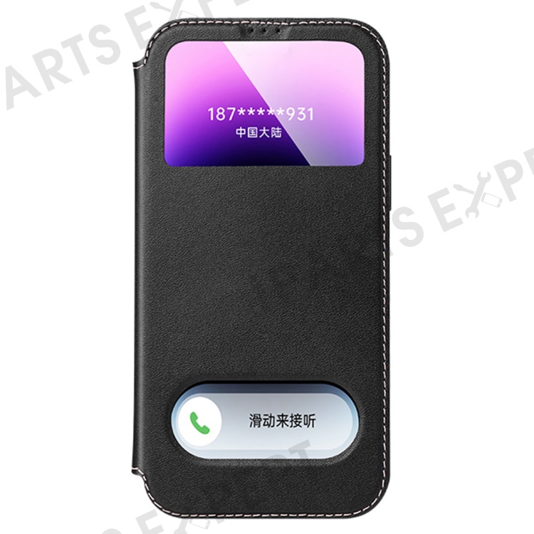 Made of premium Genuine Cowhide Leather with exquisite workmanship, the case offers an elegant look, good hand feeling, and long durability. It featured with dual-window for viewing information/answering or rejecting phone calls. A foldable stand supports a comfortable viewing, definitely making video watching more enjoyable.