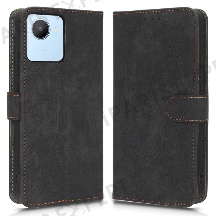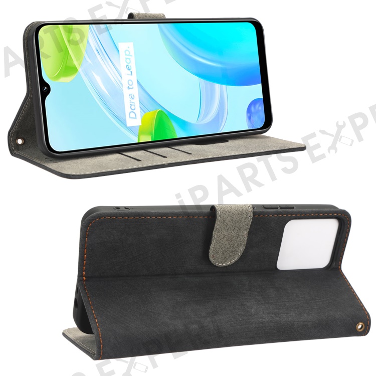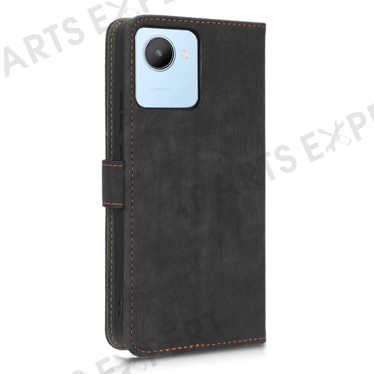 Anti-fall PU Leather Phone Cover For Realme C30 4G / Narzo 50i Prime 4G, Magnetic RFID Blocking Protective Phone Case with Wallet Stand - Black