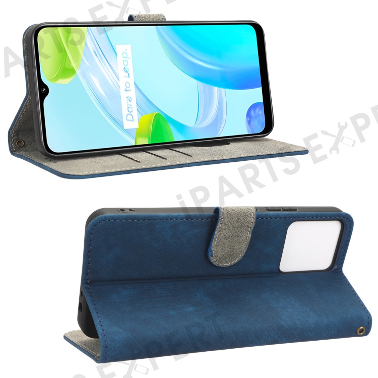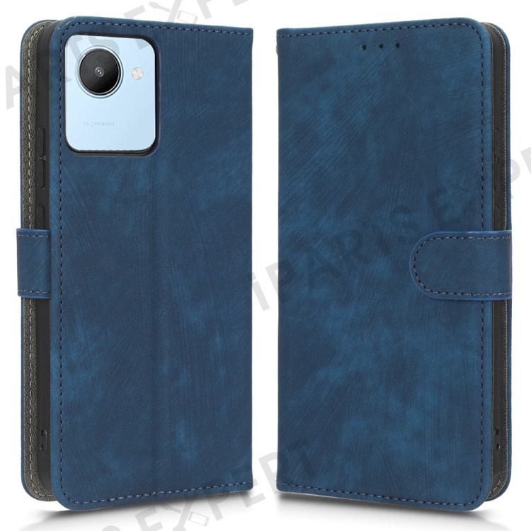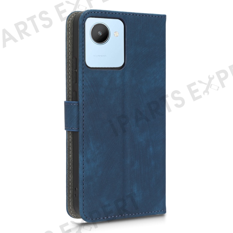 Anti-fall PU Leather Phone Cover For Realme C30 4G / Narzo 50i Prime 4G, Magnetic RFID Blocking Protective Phone Case with Wallet Stand - Blue
