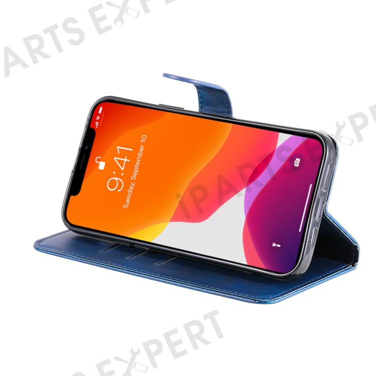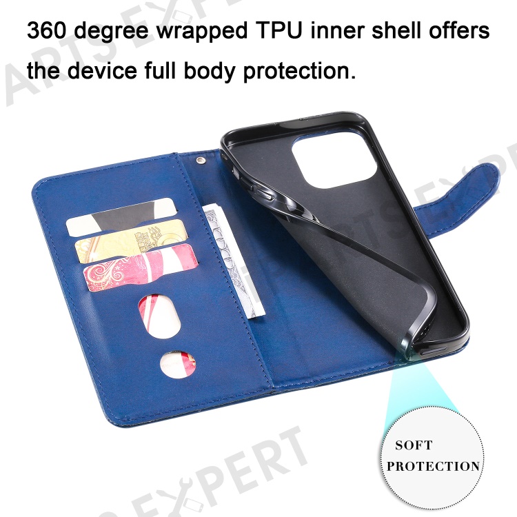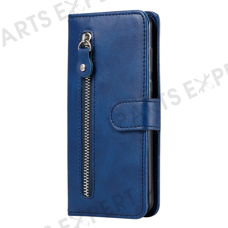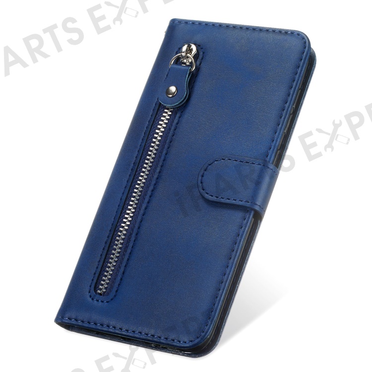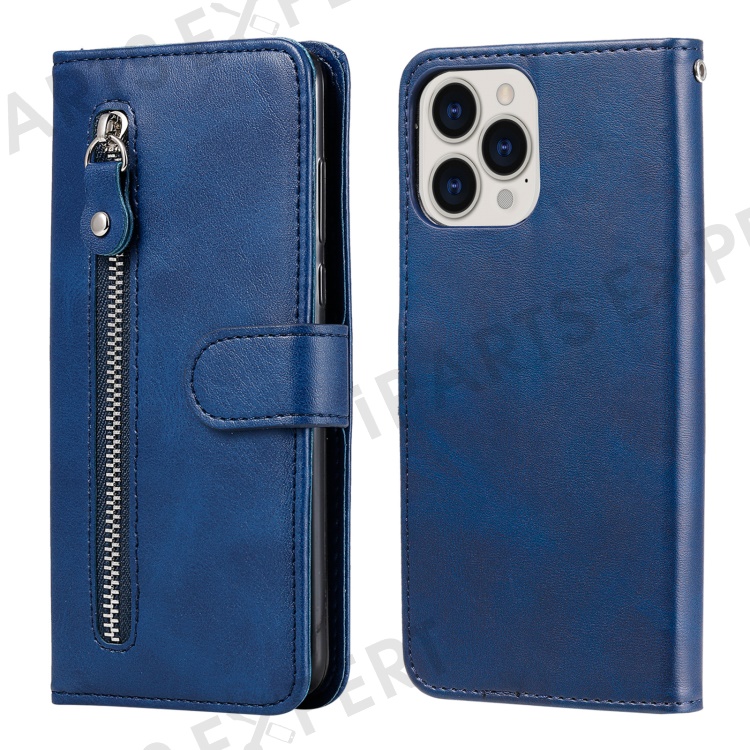 Anti-fall Zipper Pocket Leather Wallet Phone Case Shell for iPhone 13 Pro Max 6.7 inch - Blue