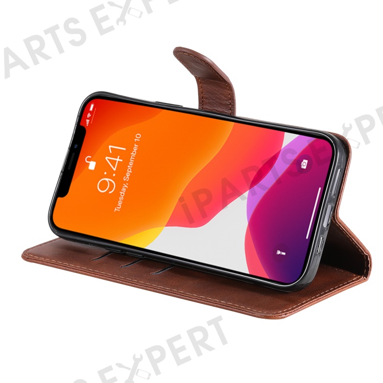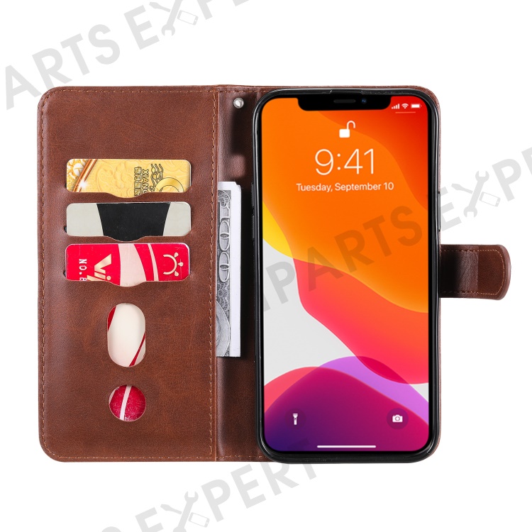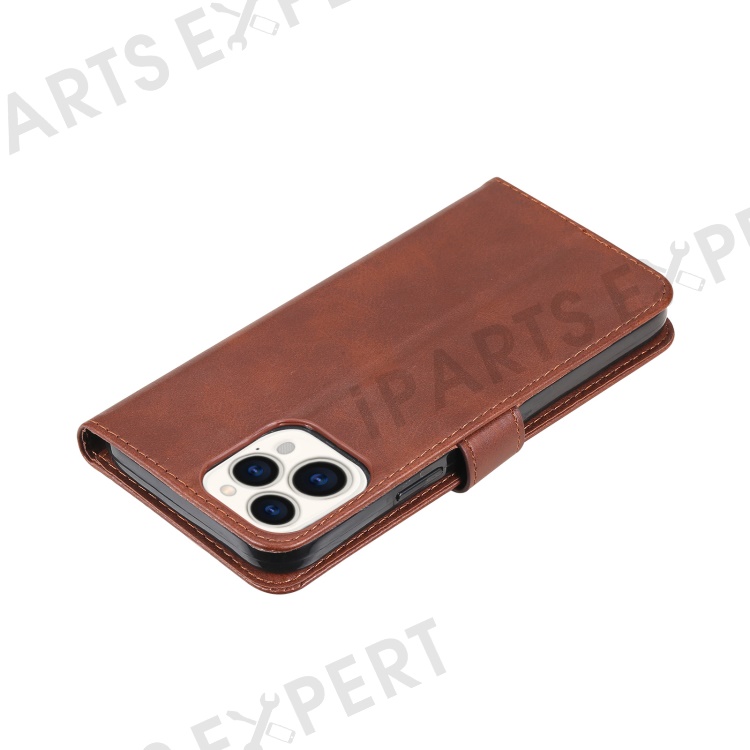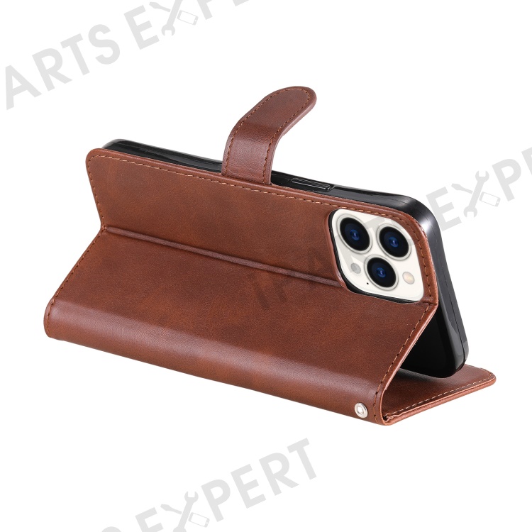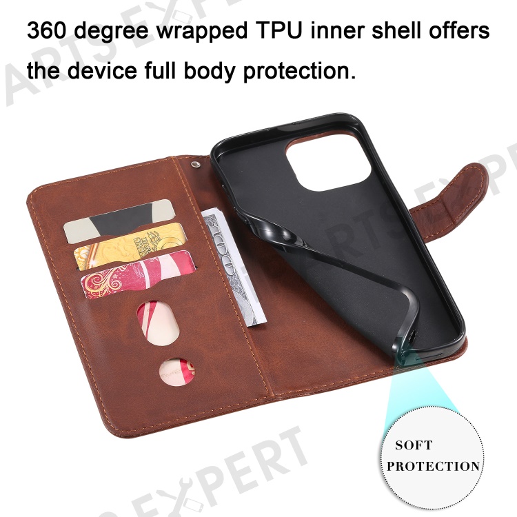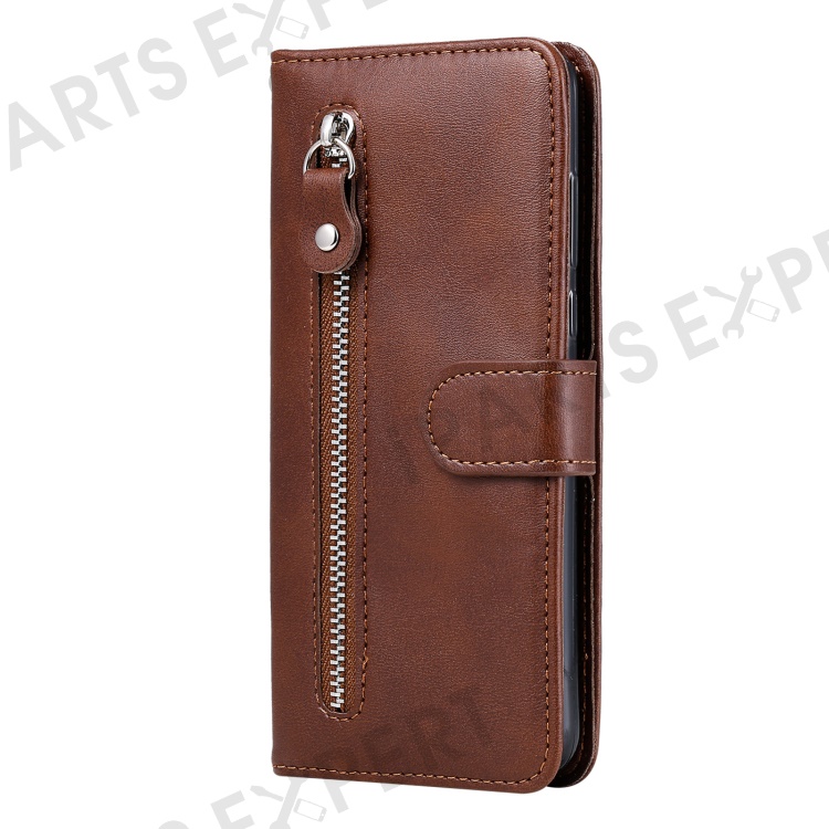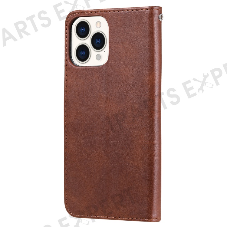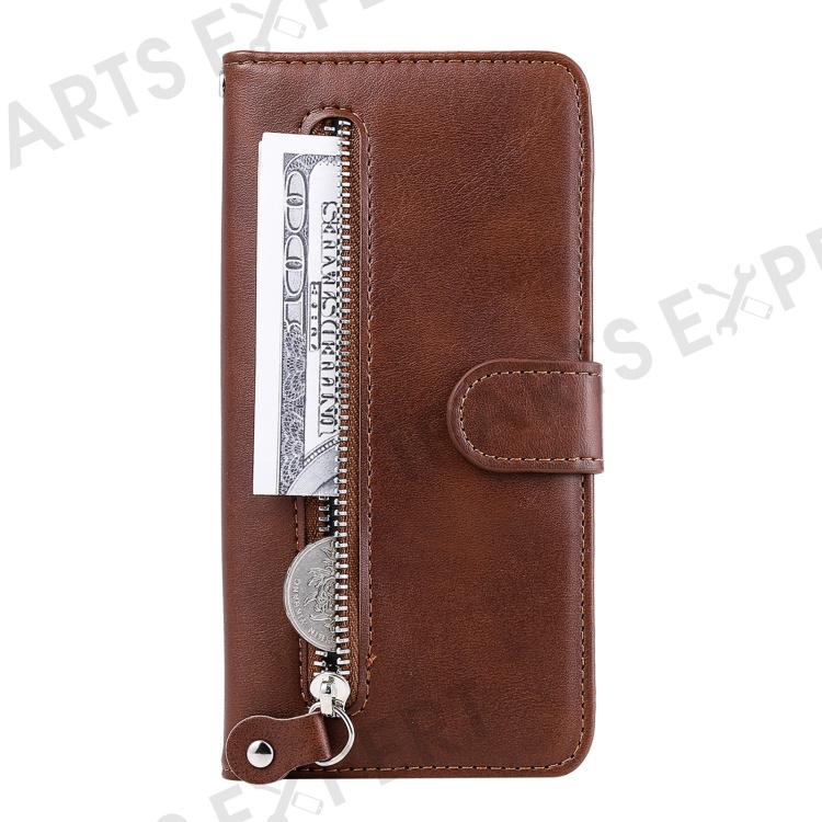 Anti-fall Zipper Pocket Leather Wallet Phone Case Shell for iPhone 13 Pro Max 6.7 inch - Brown
