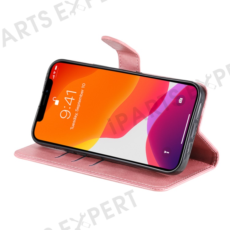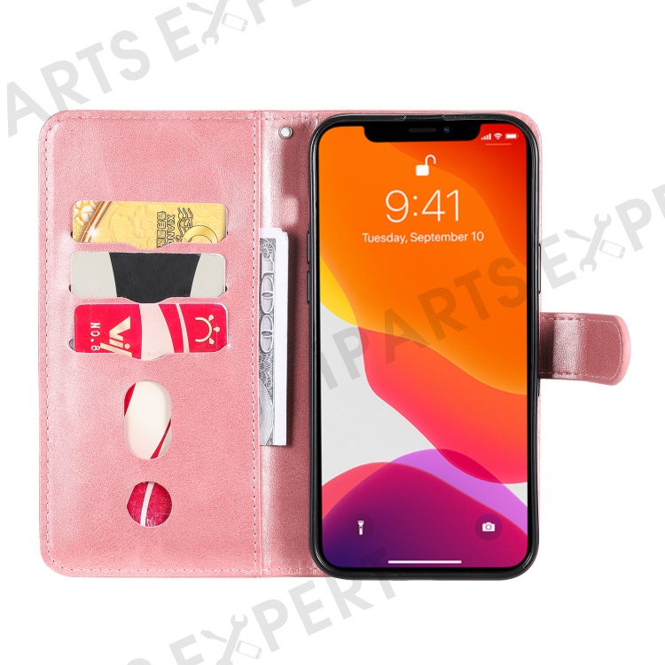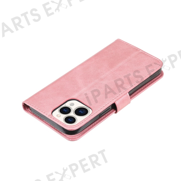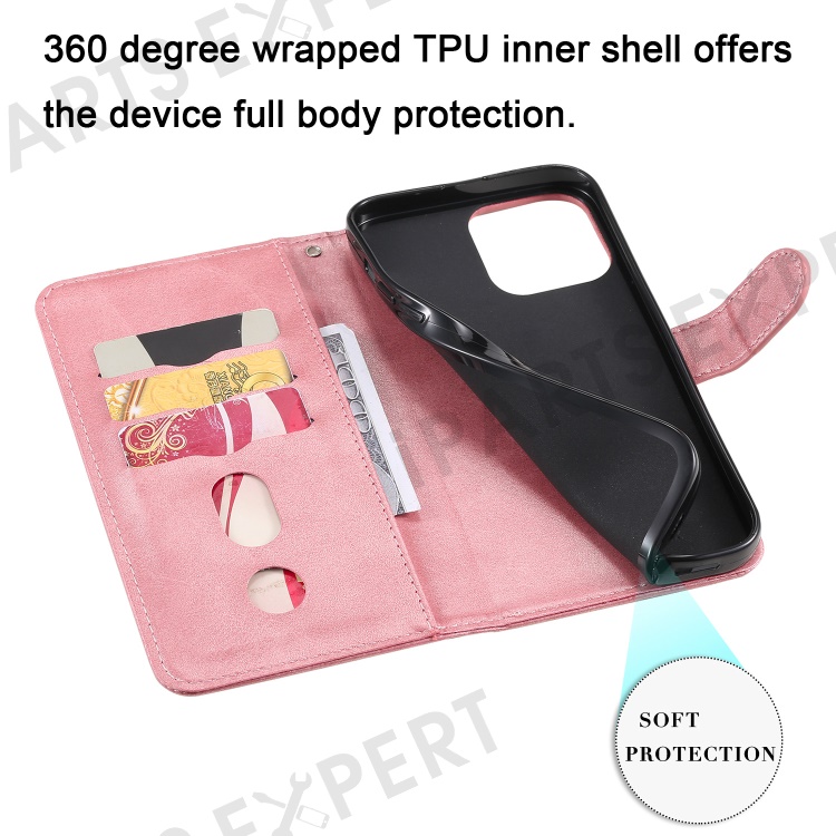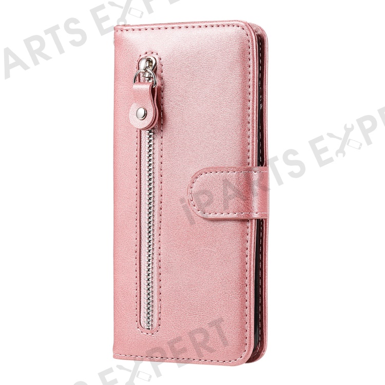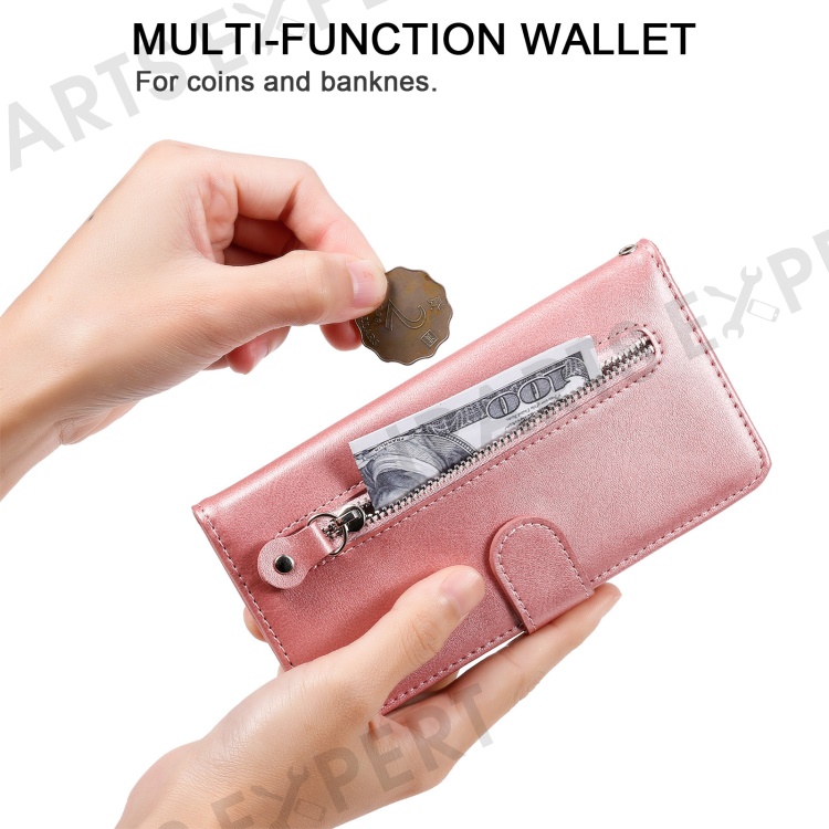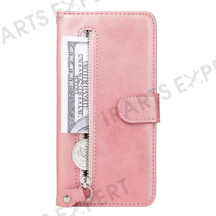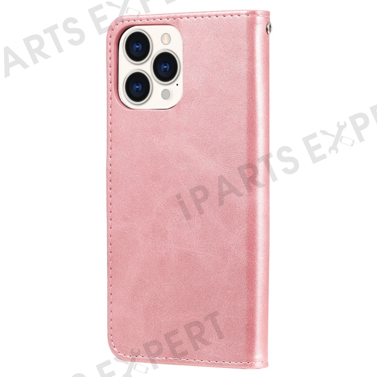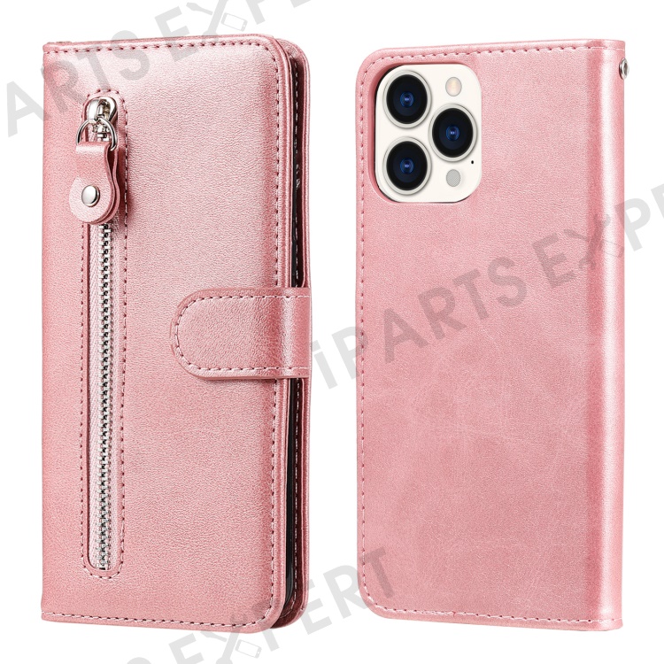 Anti-fall Zipper Pocket Leather Wallet Phone Case Shell for iPhone 13 Pro Max 6.7 inch - Rose Gold