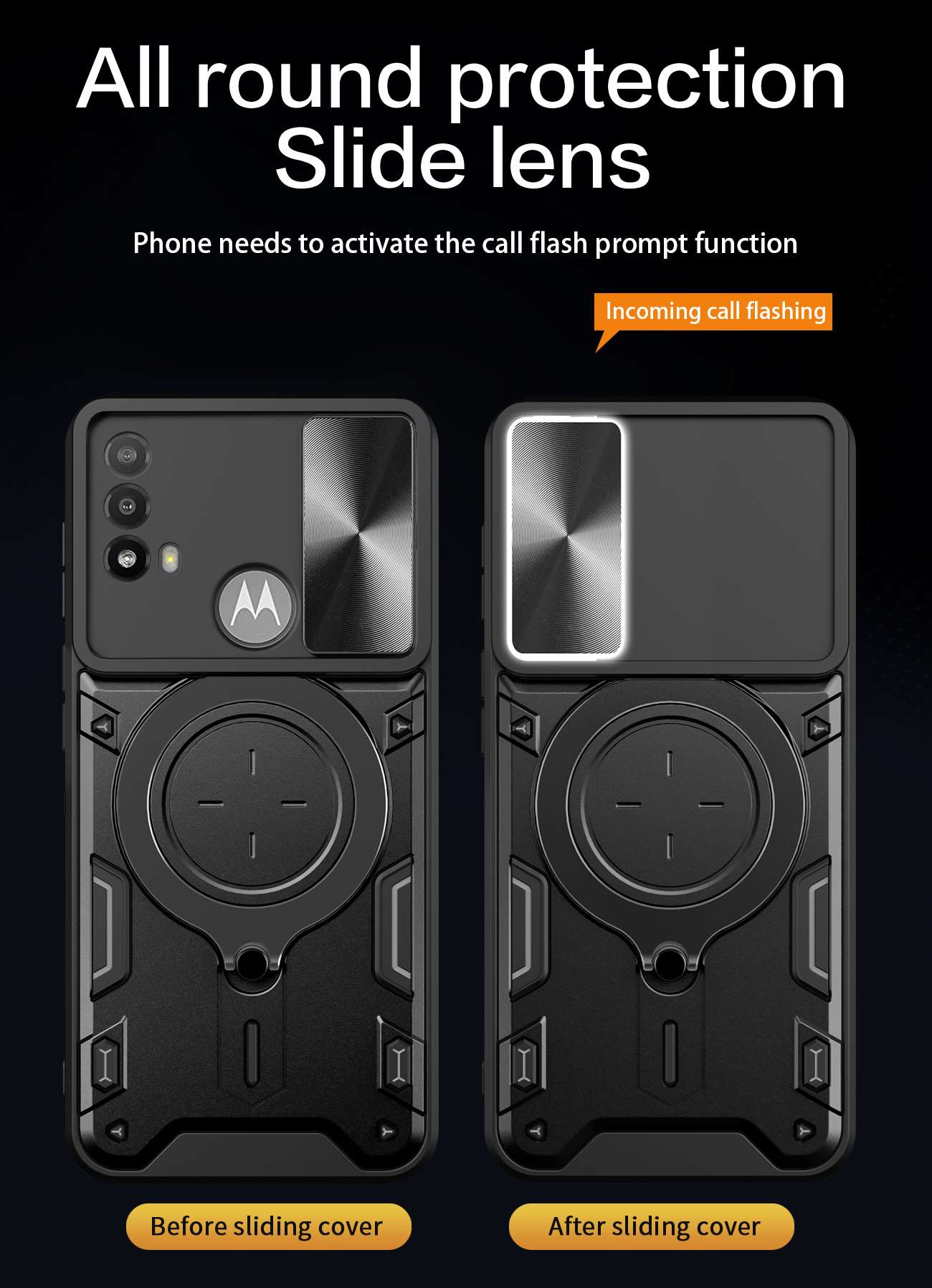 Anti-scratch Cover for Motorola Moto E20 / E30 / E40 Slide Camera Lid PC+TPU Phone Case with Ring Kickstand - Black