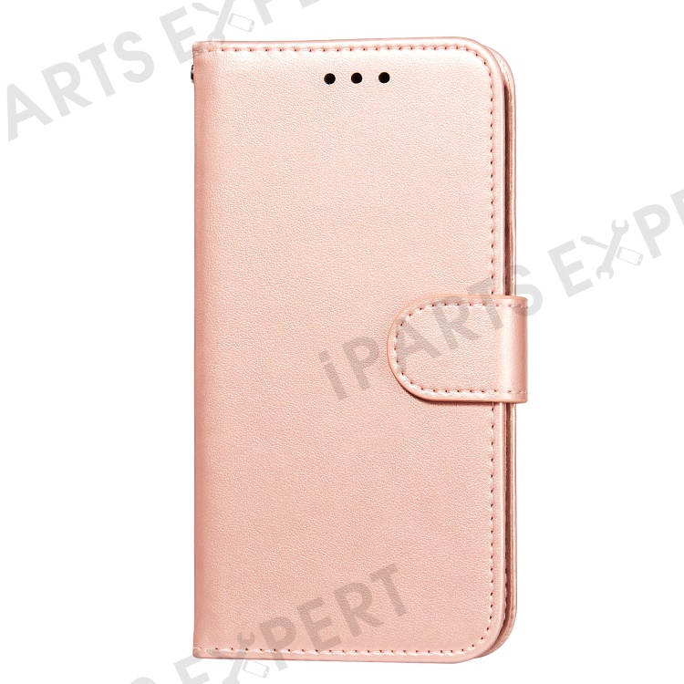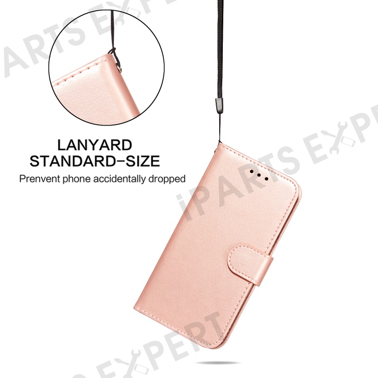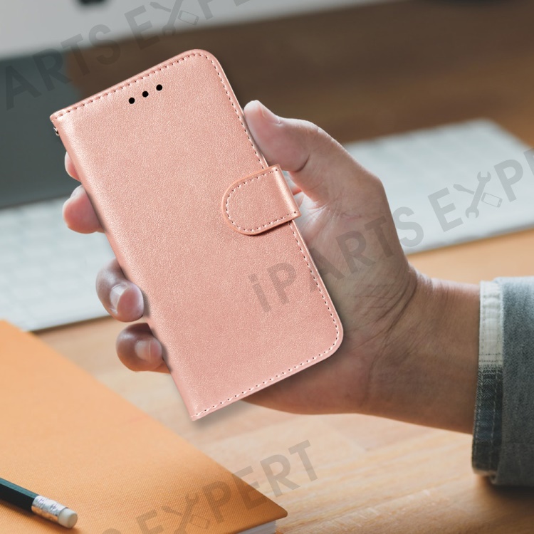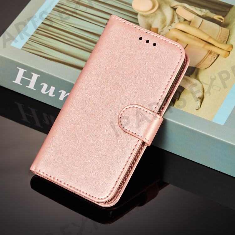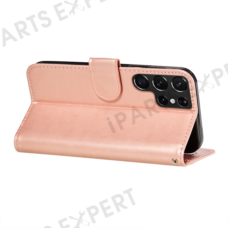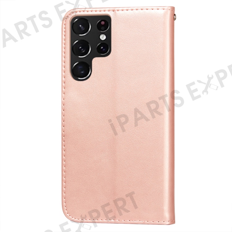 Anti-scratch Flip Phone Cover Solid Color PU Leather Wallet Stand Phone Case for Samsung Galaxy S22 Ultra 5G - Rose Gold