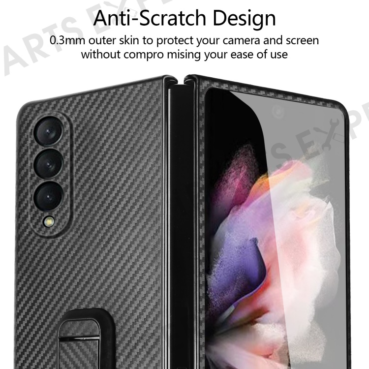For Samsung Galaxy Z Fold3 5G Anti-Scratch Reinforced Corner Phone Case PU Leather + PC Hybrid Defender Protective Shockproof Cover with Tempered Glass Screen Protector - Black