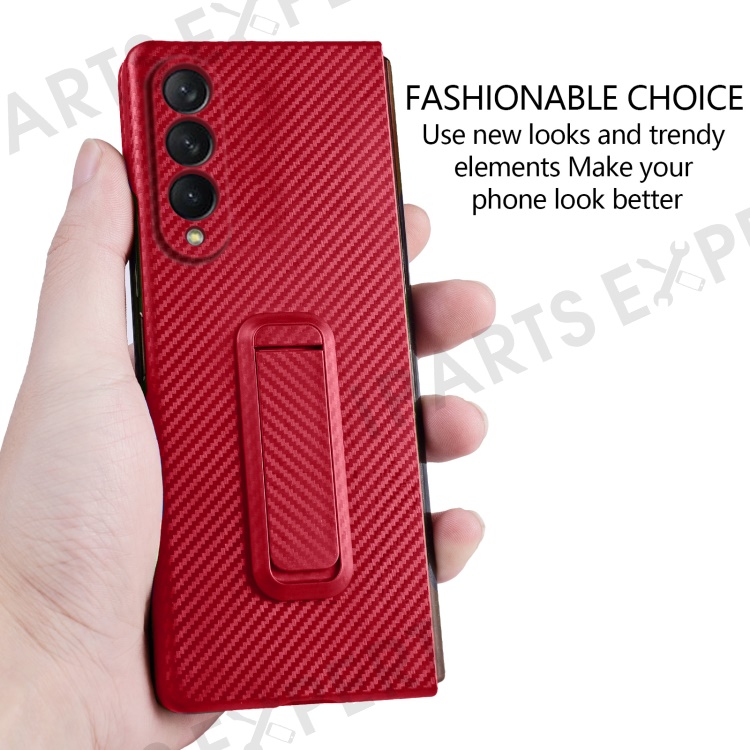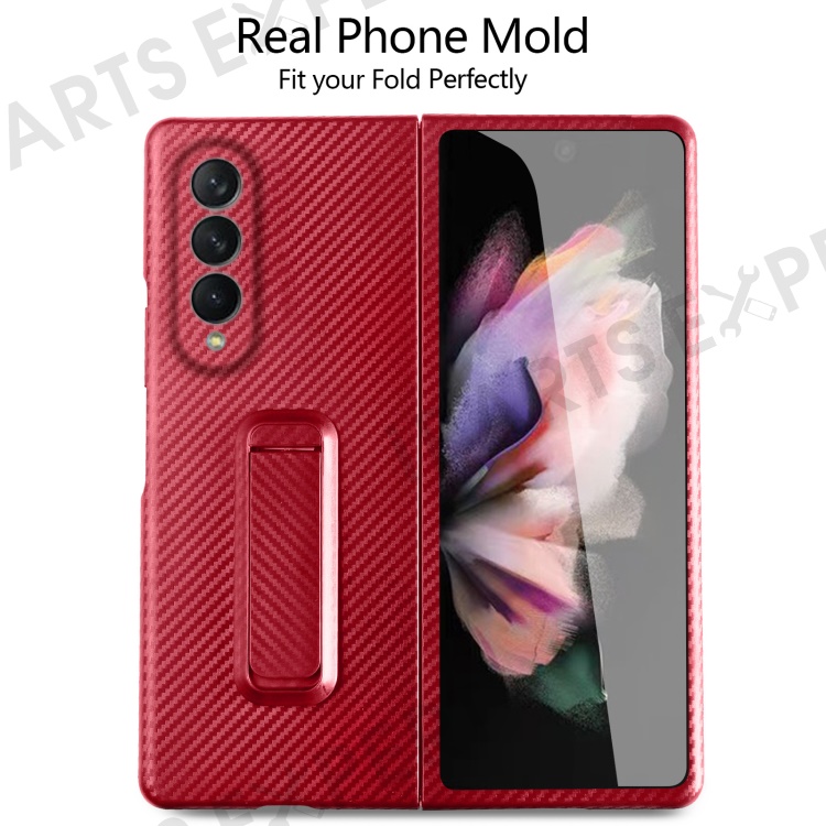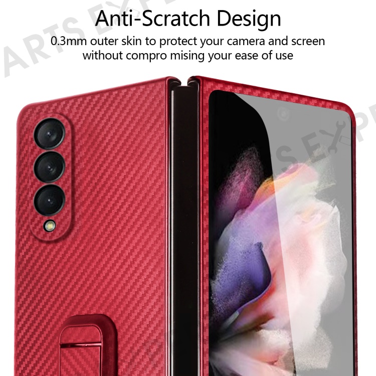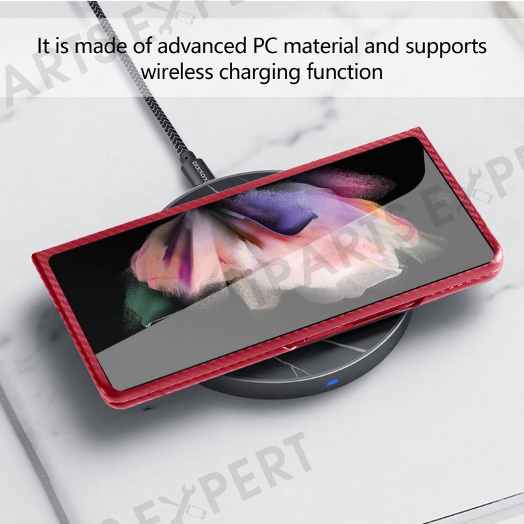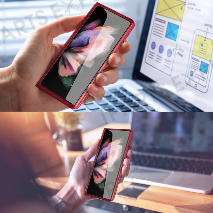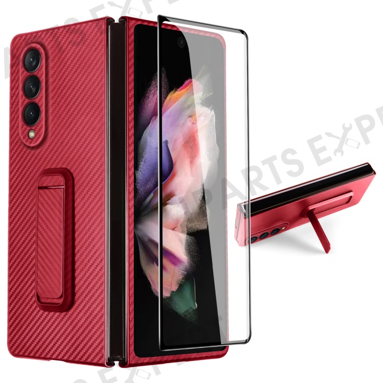 For Samsung Galaxy Z Fold3 5G Anti-Scratch Reinforced Corner Phone Case PU Leather + PC Hybrid Defender Protective Shockproof Cover with Tempered Glass Screen Protector - Red