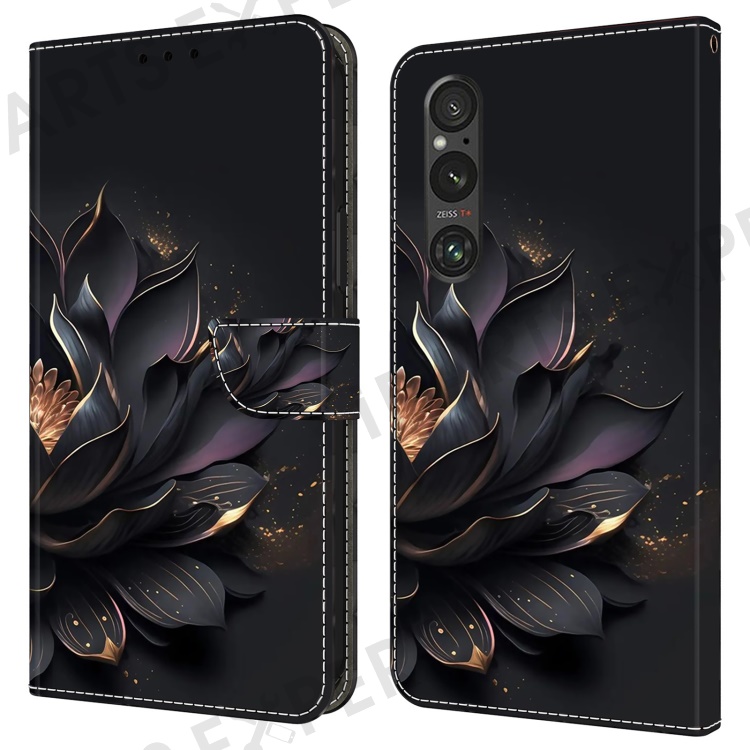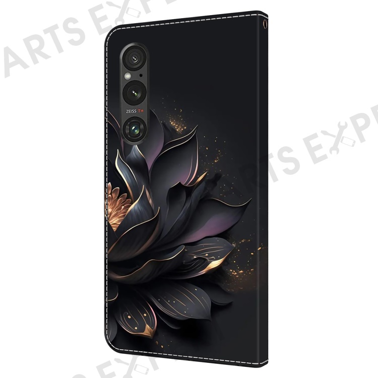 Anti-Scratch Wallet Phone Case for Sony Xperia 1 V Case Pattern Printing Leather Flip Cover - Purple Lotus