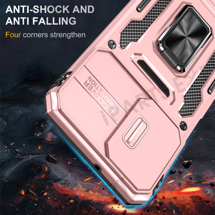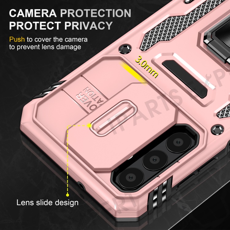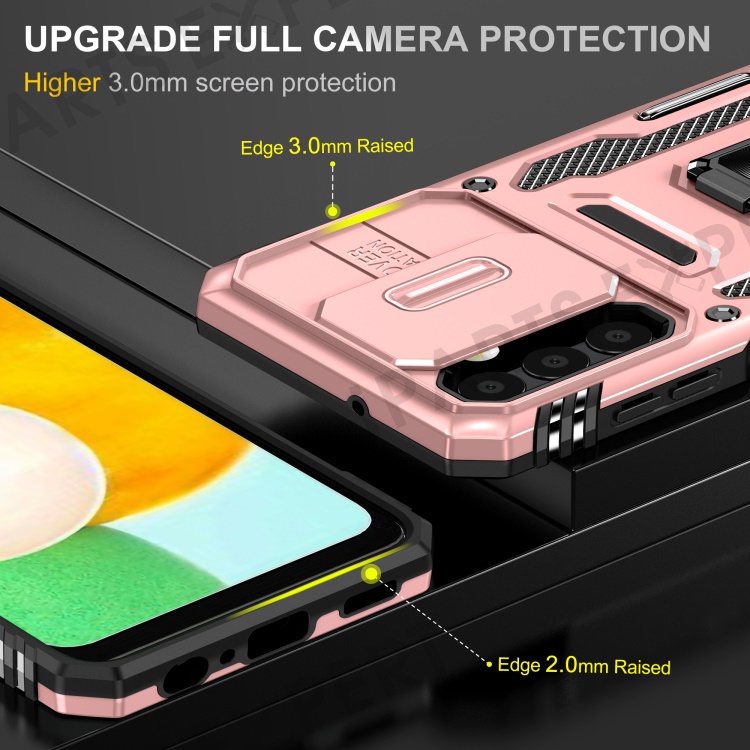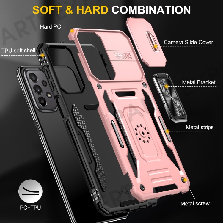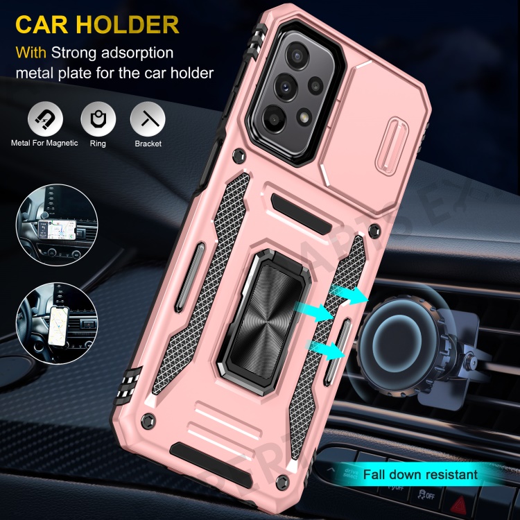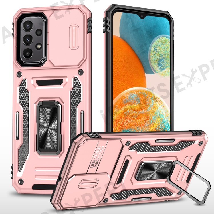 Armor Series for Samsung Galaxy A23 4G / 5G (Global Version) Kickstand Design Phone Case PC + TPU Protective Back Cover with Slide Camera Cover - Rose Gold