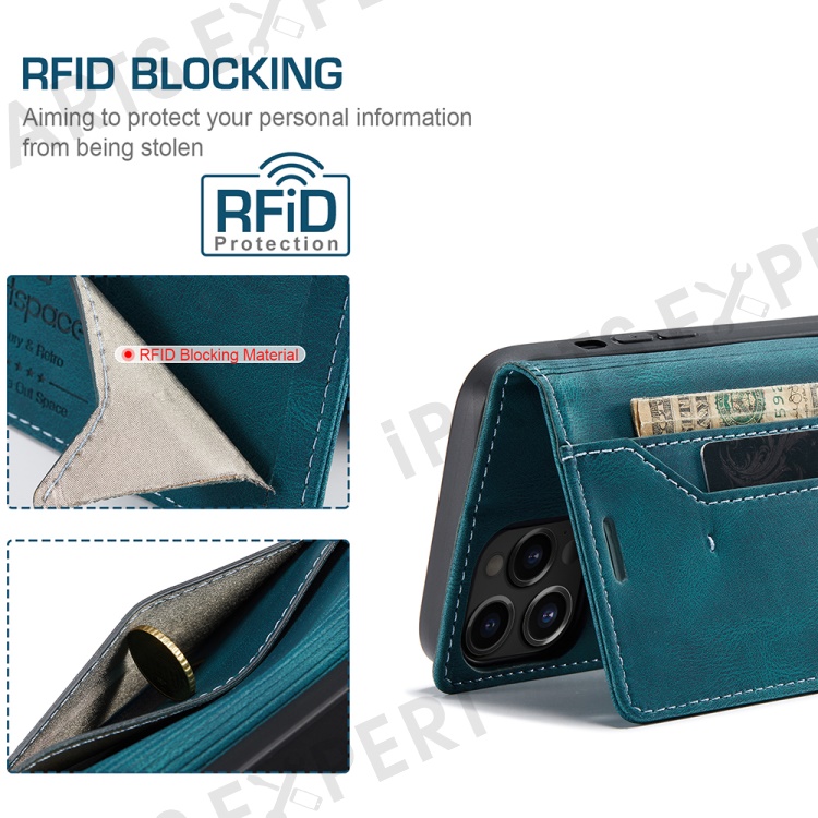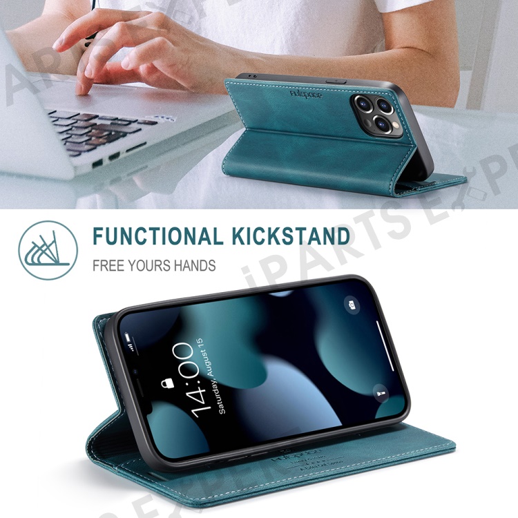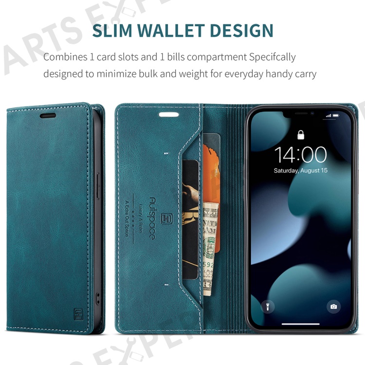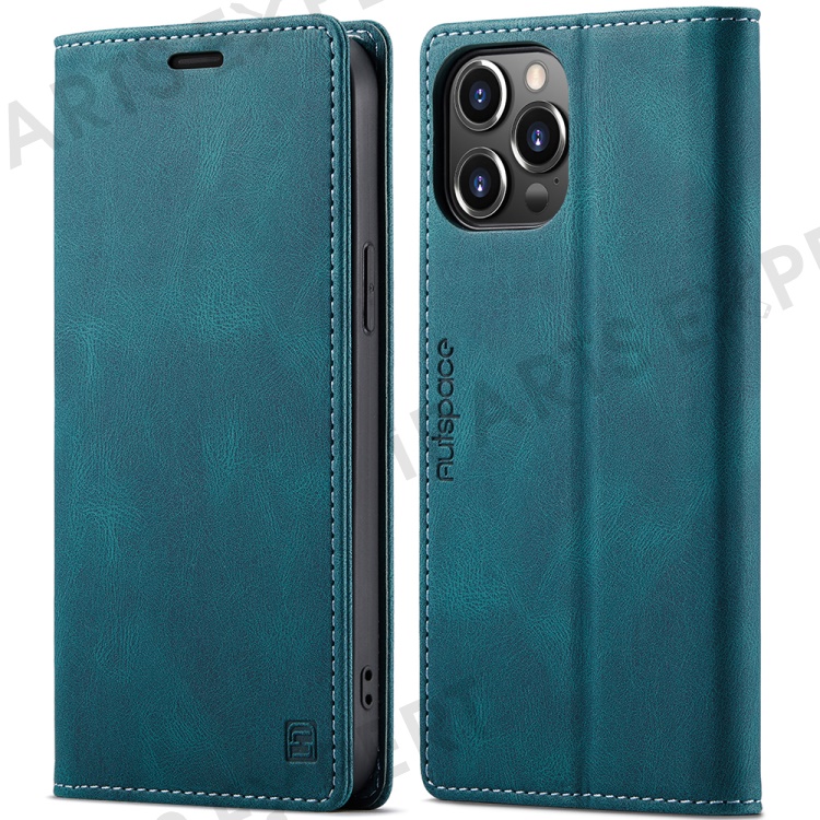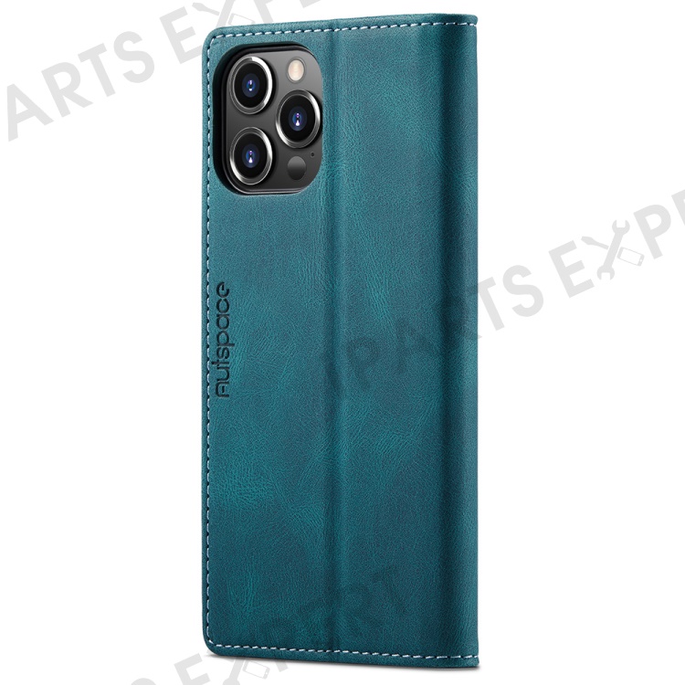 AUTSPACE A01 Series Retro Matte Leather Wallet Case with RFID Blocking Stand Flip Magnetic Cover for iPhone 13 Pro Max 6.7 inch - Blue