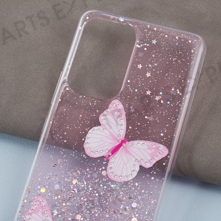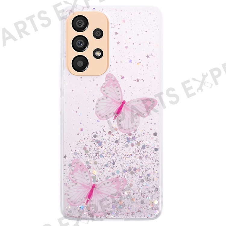 AW Series Case for Samsung Galaxy A23 5G (Global Version) / A23 4G Shell Sparkle Epoxy Butterfly Decor Big Rear Lens Hole Phone Cover - Pink