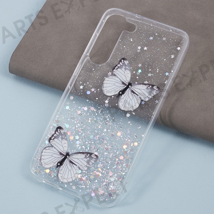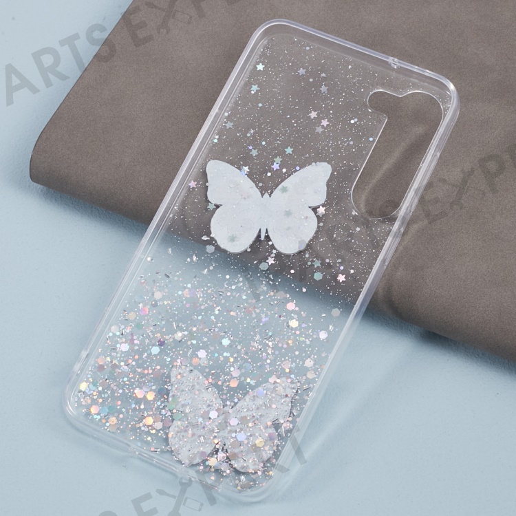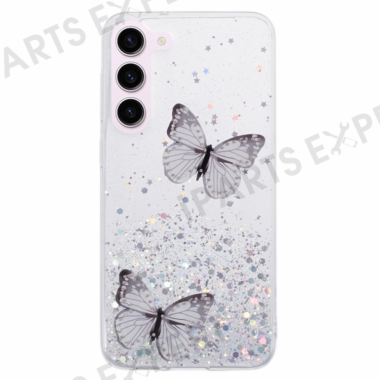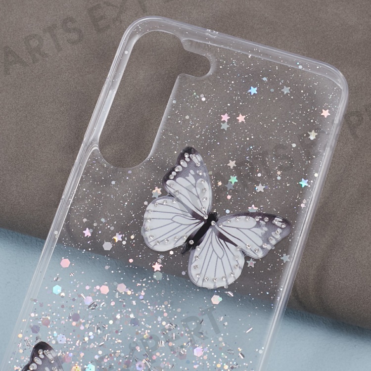 AW Series For Samsung Galaxy S23 Sparkle Epoxy Case TPU+PVC Big Rear Lens Hole Protective Cover - White