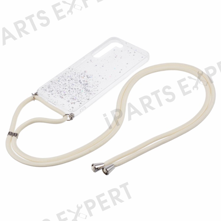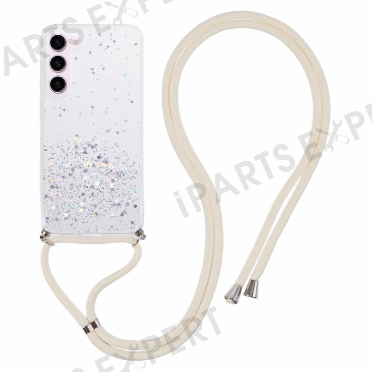 AW Series TPU Case for Samsung Galaxy S23+ Case Sparkle Epoxy Anti-Drop Phone Protector with Lanyard - White