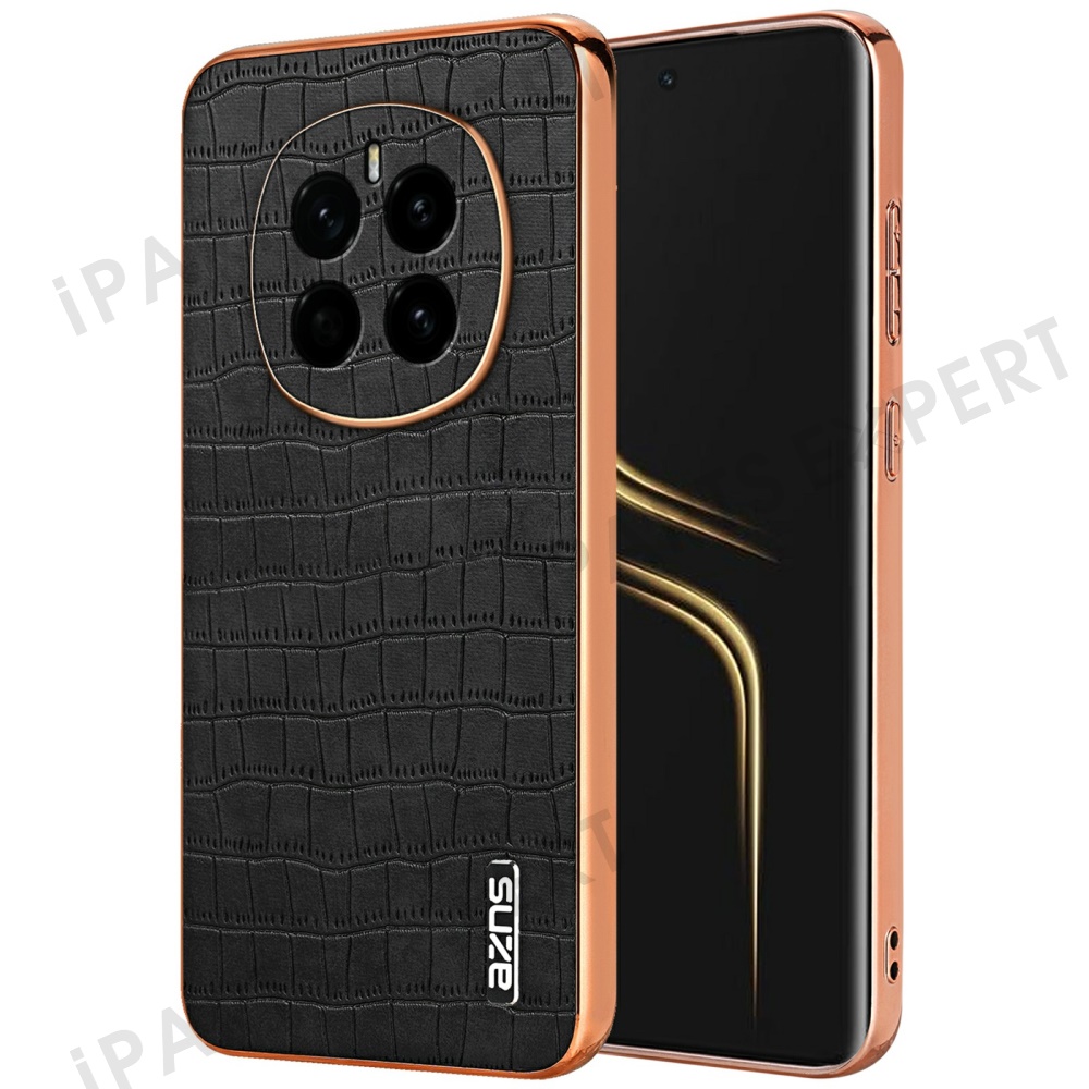 AZNS For Honor Magic7 5G Case Electroplating Crocodile Texture PU + TPU Phone Cover - Black