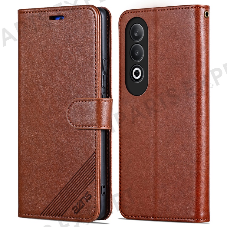 AZNS For OnePlus Nord CE4 5G / Oppo K12 Case PU Leather Magnetic Buckle Wallet Phone Cover - Brown
