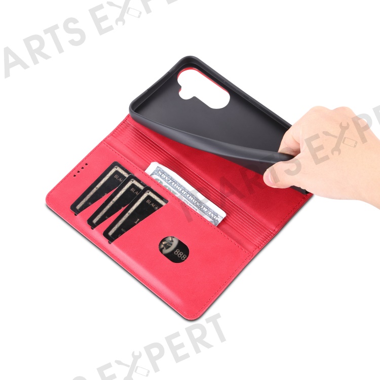 AZNS For Samsung Galaxy A55 5G PU Leather Case Magnetic Phone Cover Wallet - Red