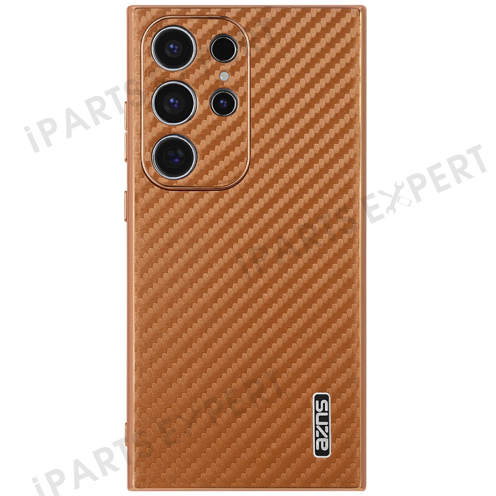 AZNS For Samsung Galaxy S23 Ultra Case Electroplating Carbon Fiber Texture PU + TPU Phone Cover - Brown