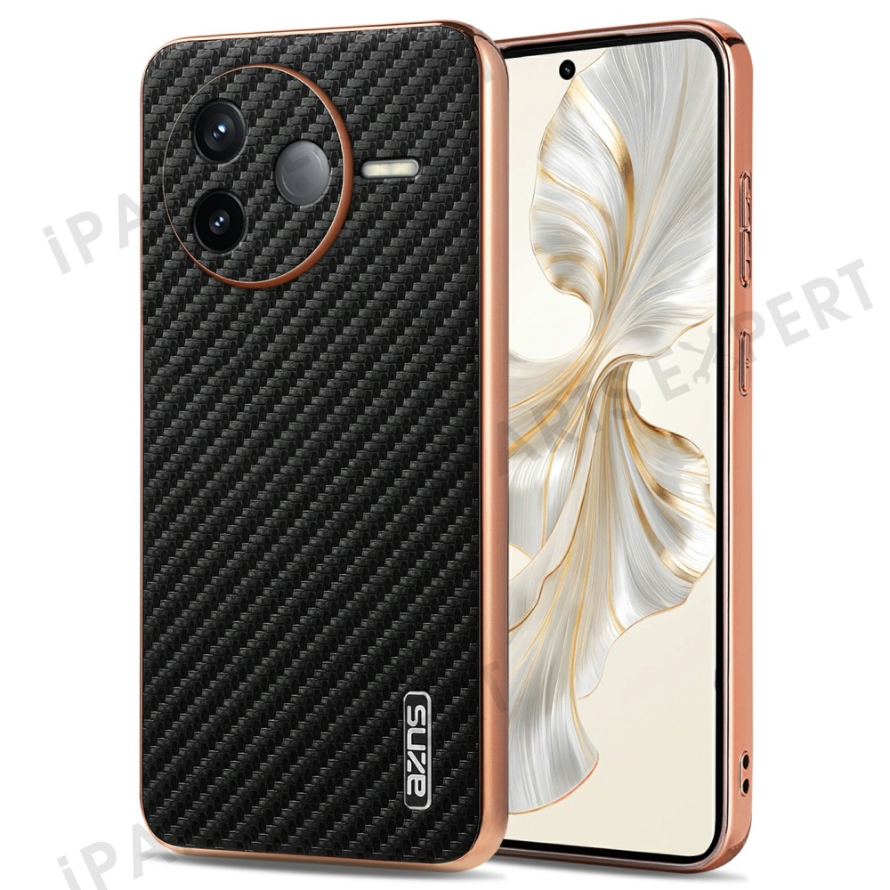 AZNS For Xiaomi Poco F7 Pro 5G / Redmi K80 5G Case Electroplating Carbon Fiber Texture PU + TPU Phone Cover - Black