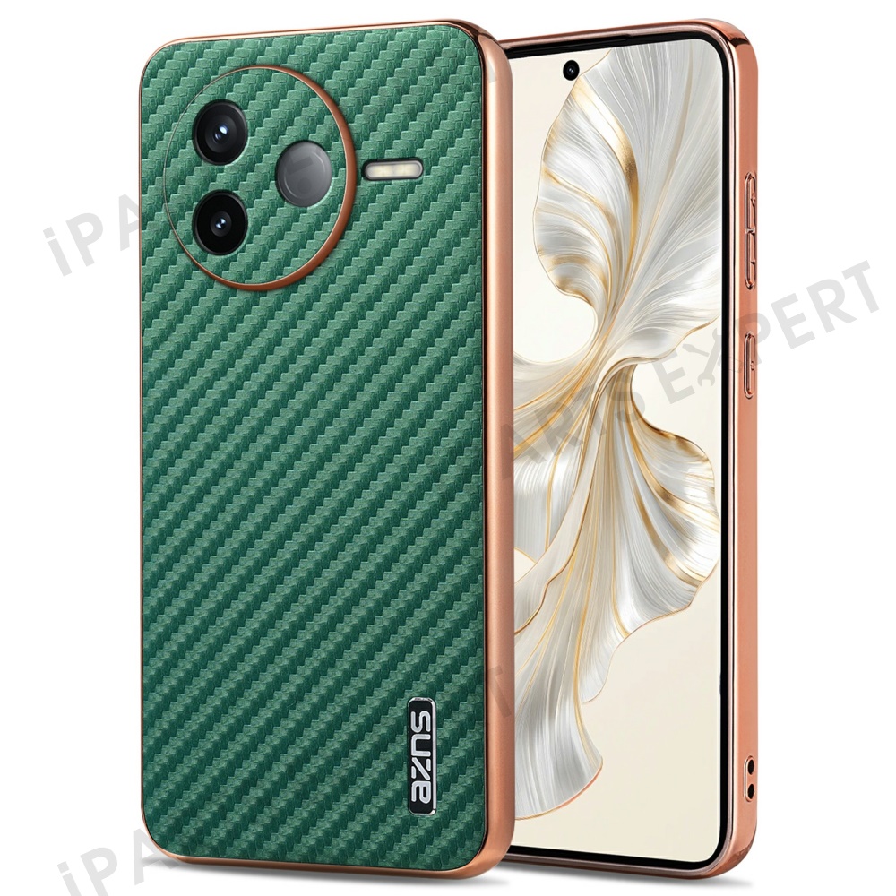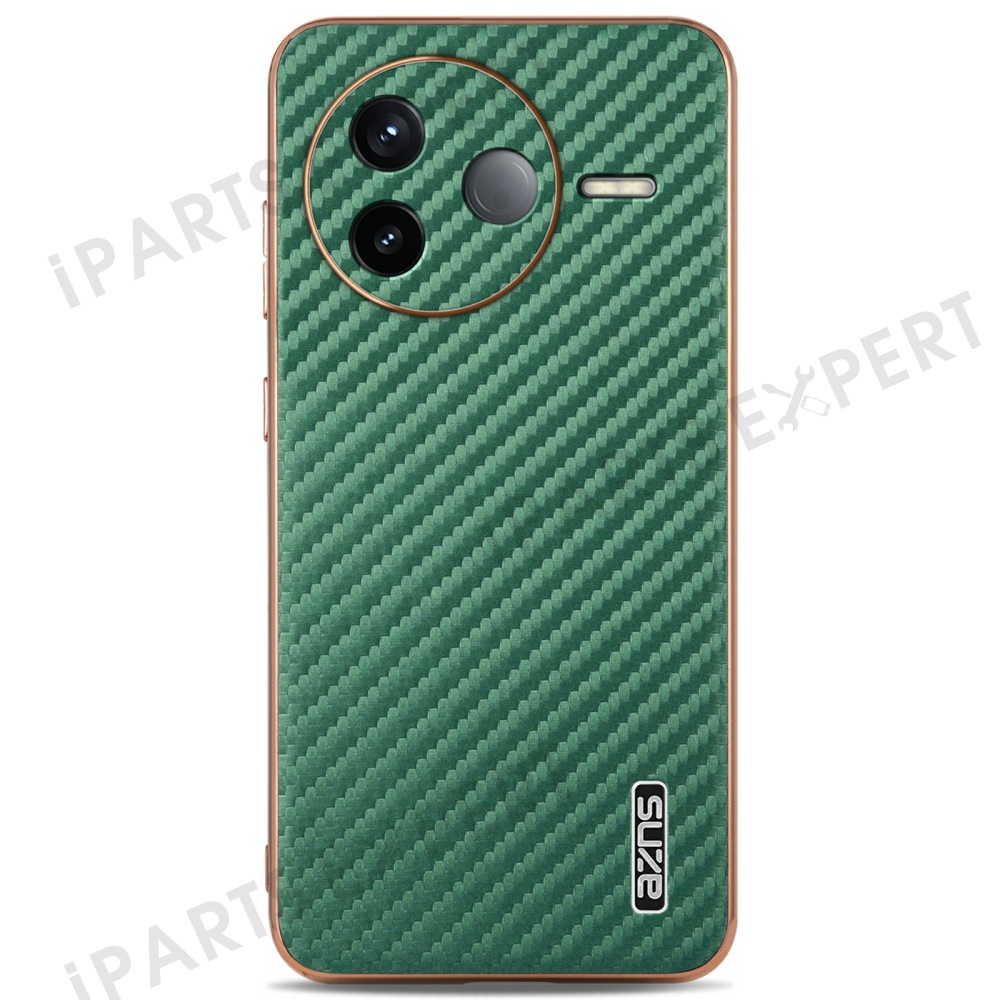 AZNS For Xiaomi Poco F7 Pro 5G / Redmi K80 5G Case Electroplating Carbon Fiber Texture PU + TPU Phone Cover - Green