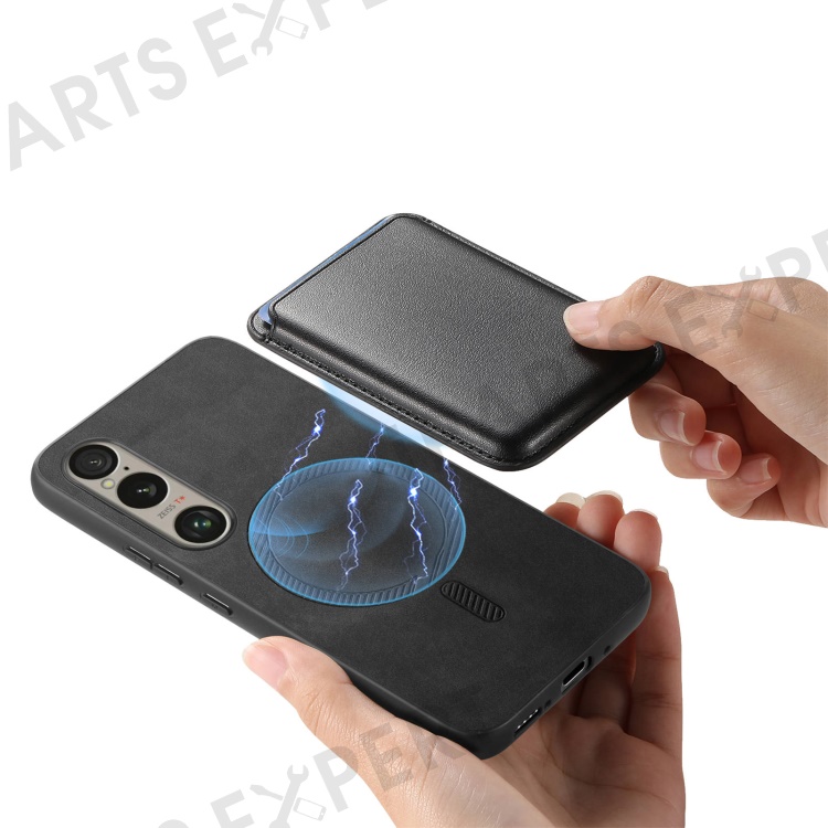 B2 For Sony Xperia 1 VI Case Leather+TPU Phone Cover with Detachable Card Bag - Black