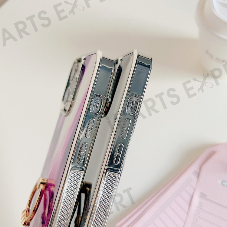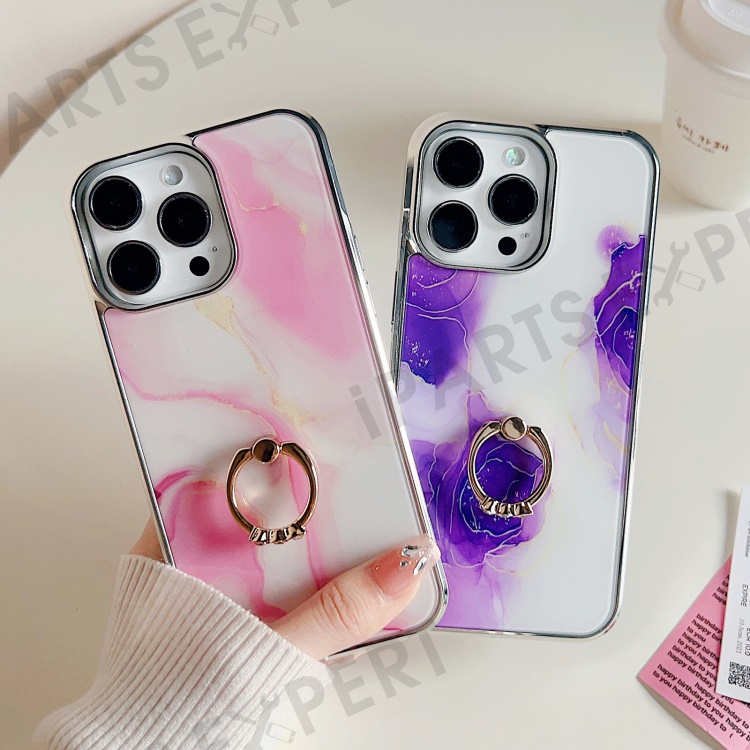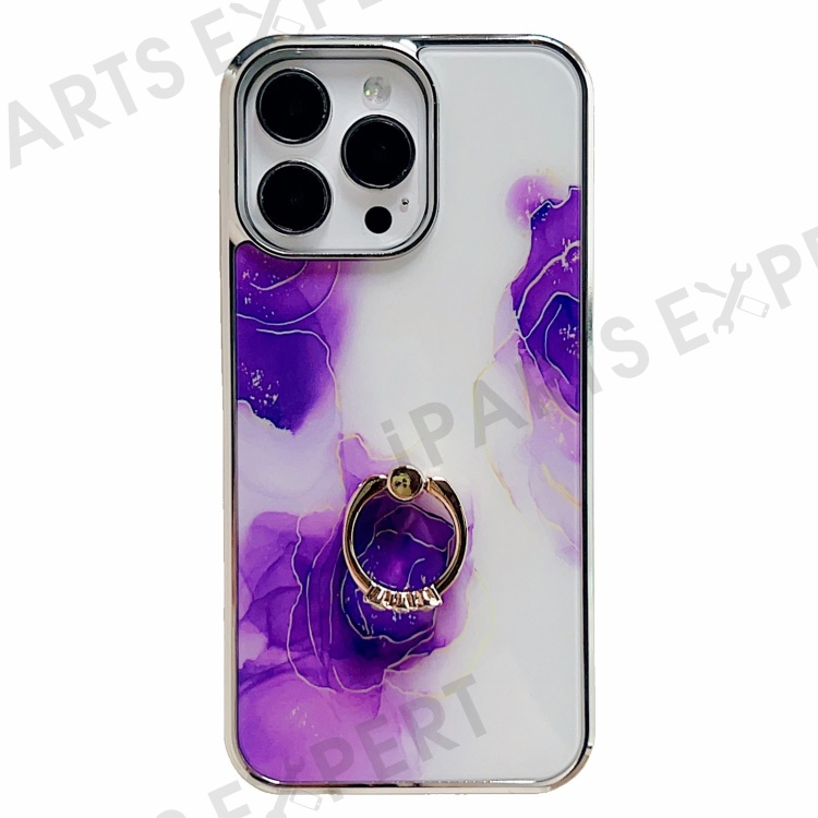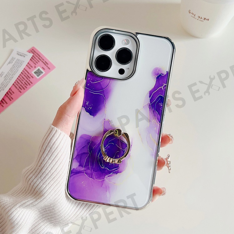 Back Cover for iPhone 14 Pro Max , Ring Kickstand Electroplating Marble Pattern Cell Phone PC+TPU Case - Style B