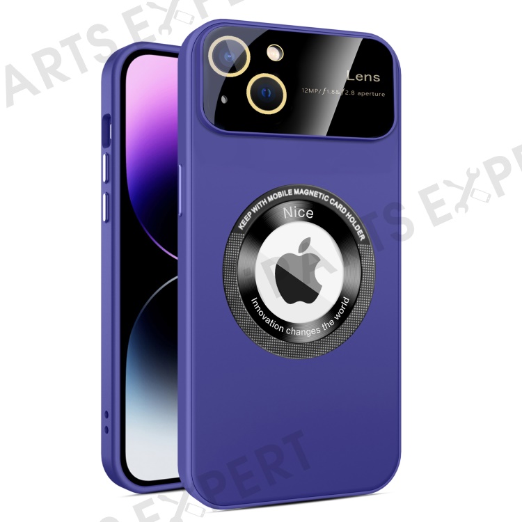 Back Logo Magnify PC+TPU Cover for iPhone 15 Anti-Drop Phone Case with Glass Lens Film Compatible with MagSafe - Purple
