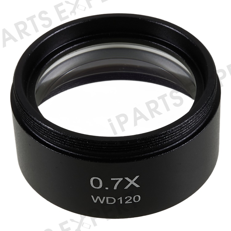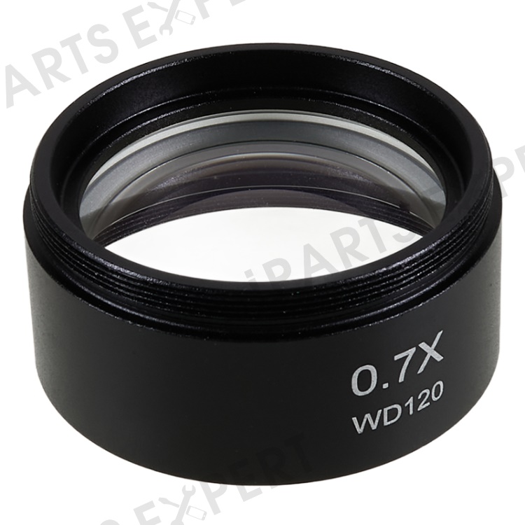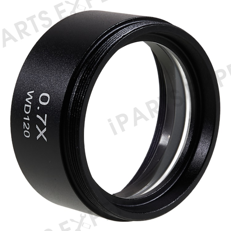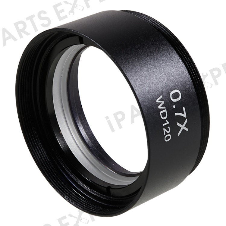 - 0.7X lens extends the microscope's working distance and field view and cuts magnification power by 0.7 times