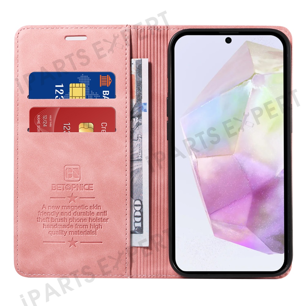 BETOPNICE 003 For Samsung Galaxy A36 5G Wallet Case Leather Phone Cover with Stand - Pink
