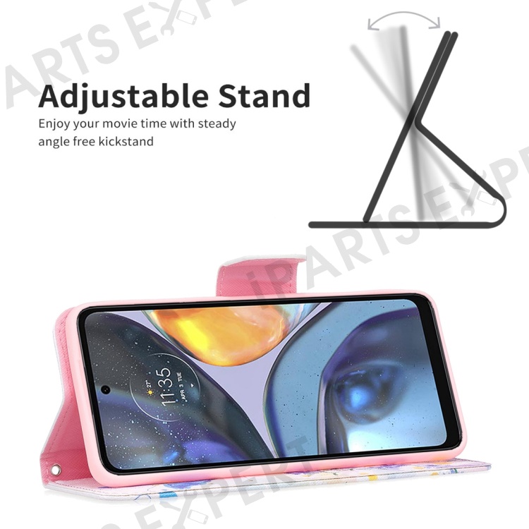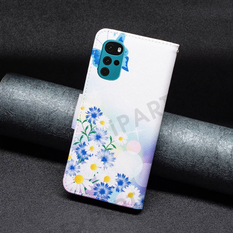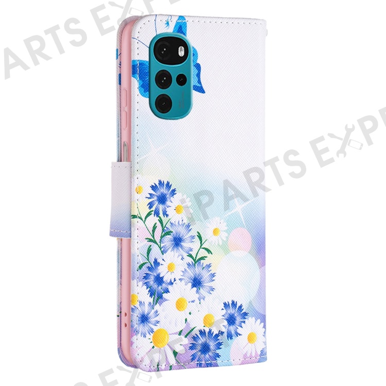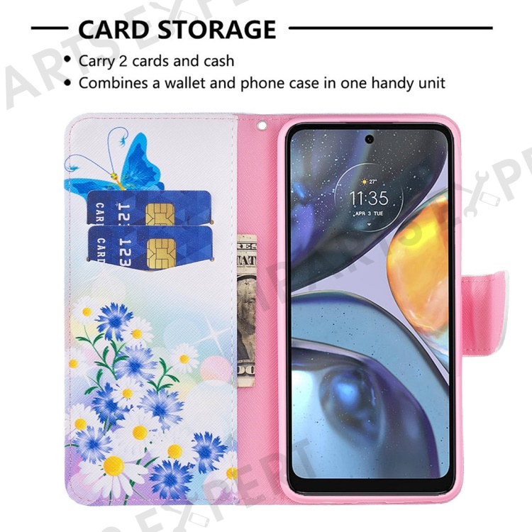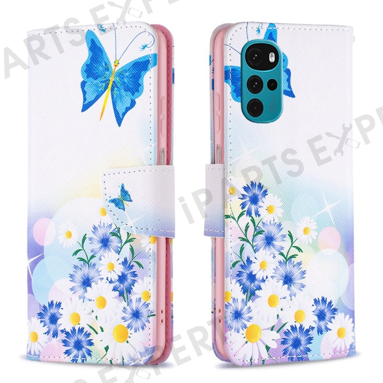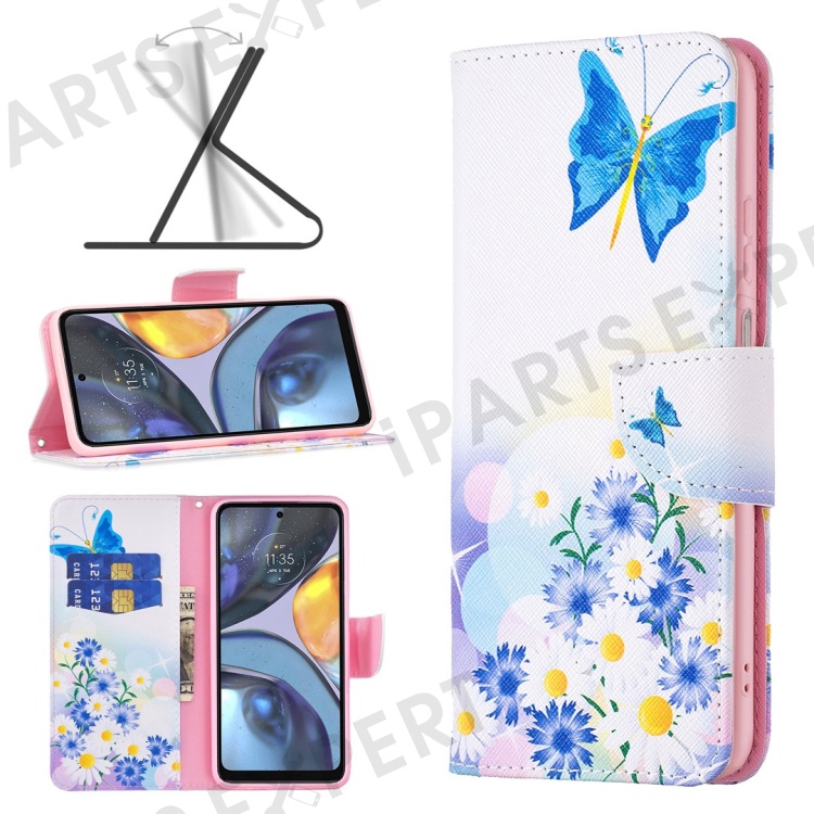 For Motorola Moto G22 Phone Case Pattern Printing PU Leather Wallet Stand Cover - Butterfly and Flowers