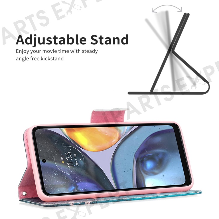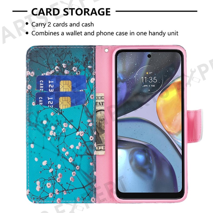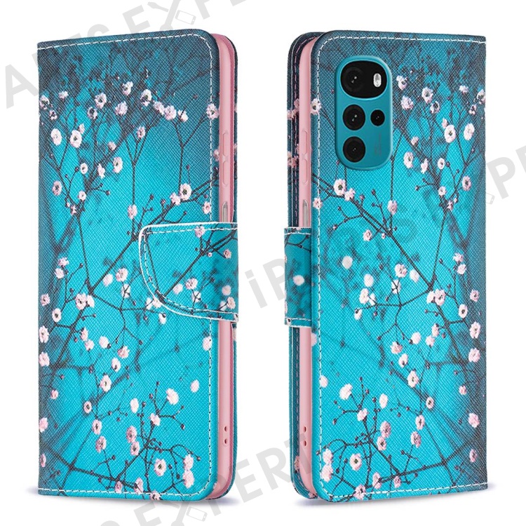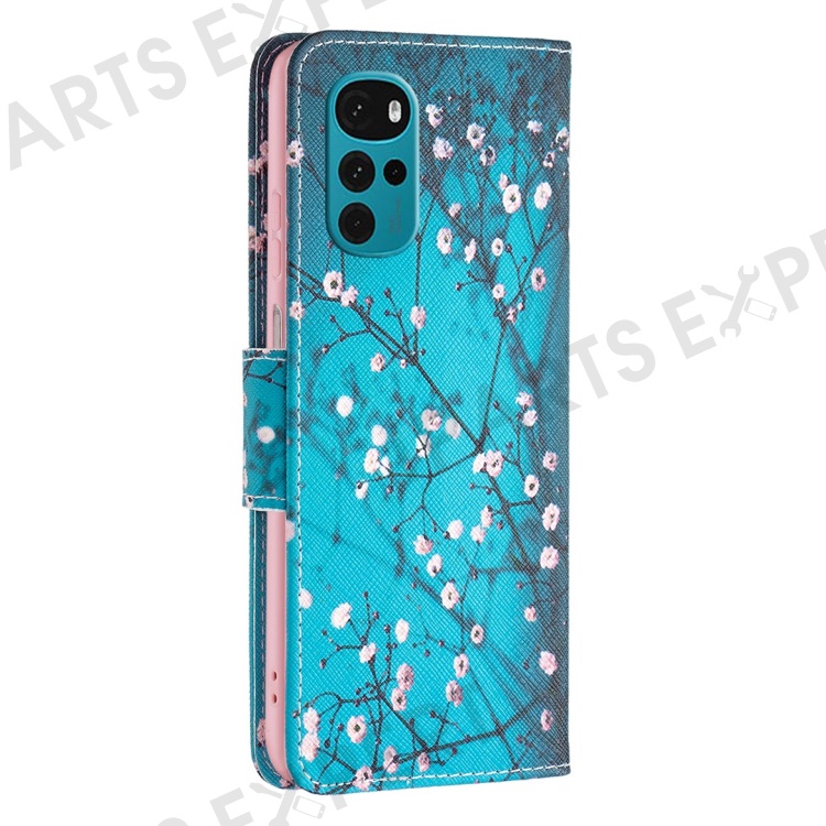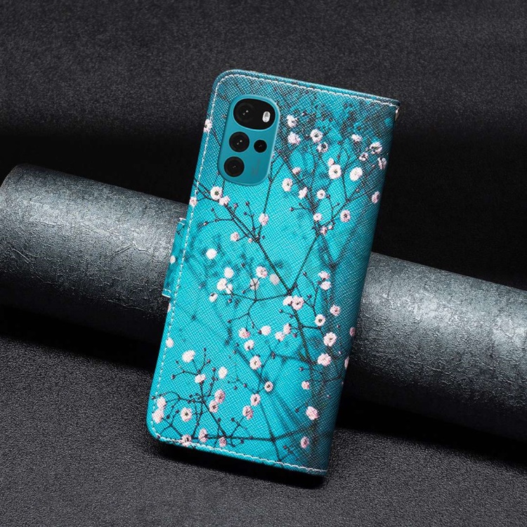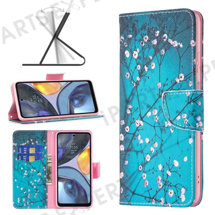 For Motorola Moto G22 Phone Case Pattern Printing PU Leather Wallet Stand Cover - Plum Blossom