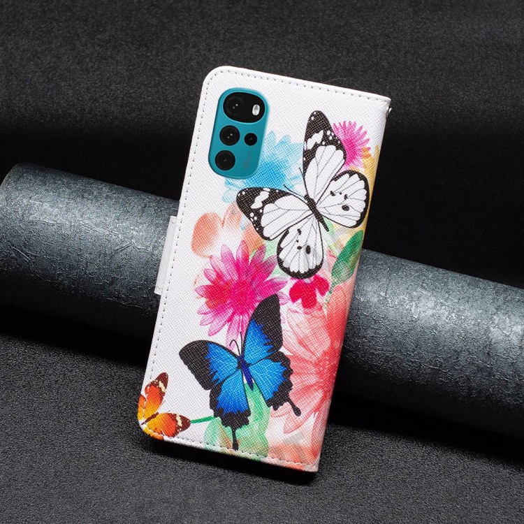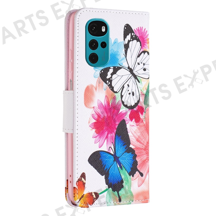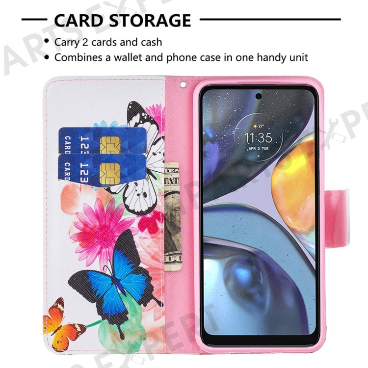 For Motorola Moto G22 Phone Case Pattern Printing PU Leather Wallet Stand Cover - Two Butterflies