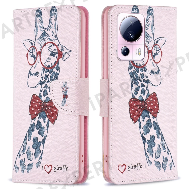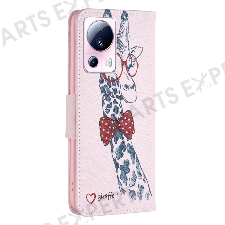 For Xiaomi 13 Lite / Civi 2 5G Phone Case Pattern Printing PU Leather Wallet Stand Cover - Giraffe