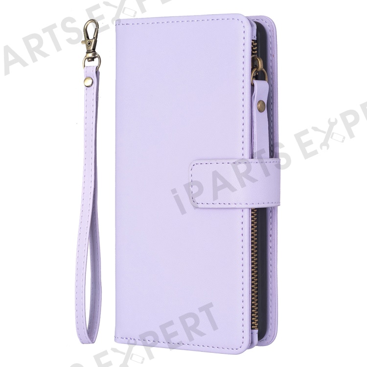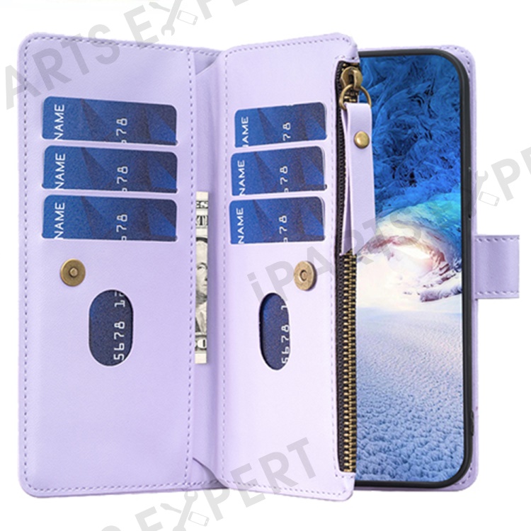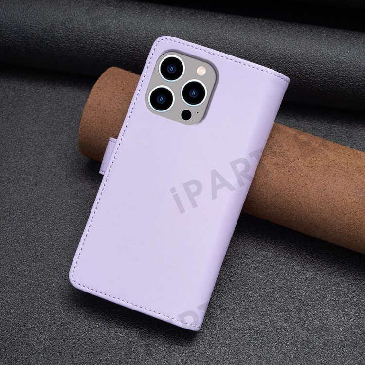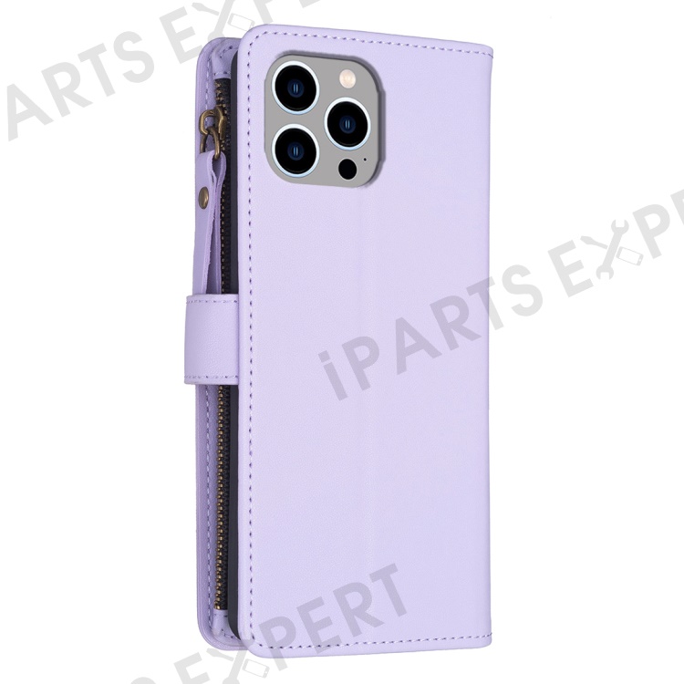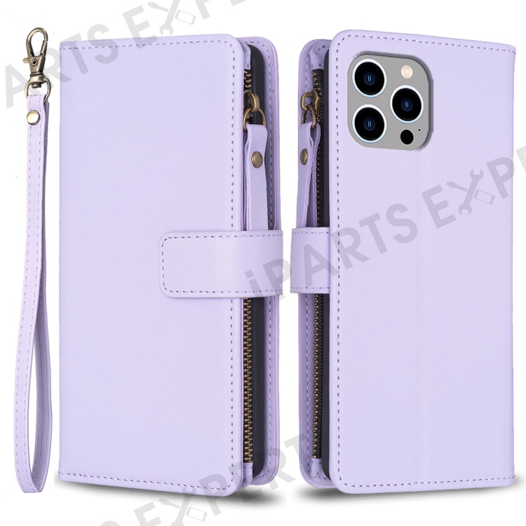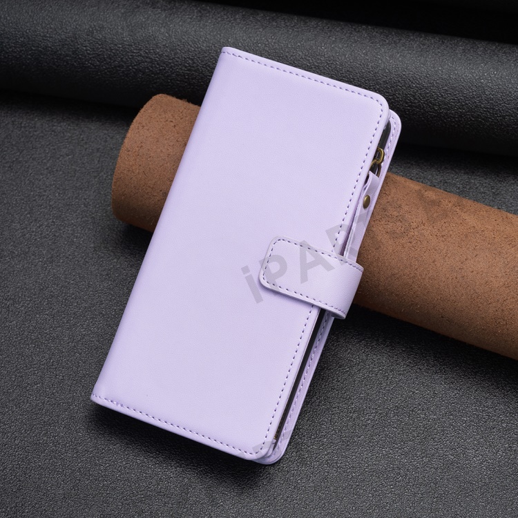 BF Style-19 For iPhone 15 Pro Max PU Leather Phone Case Flip Wallet Stand Cover with Zipper Pocket - Purple