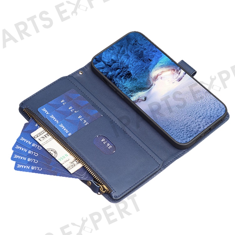 BF Style-19 for Oppo A74 / A93 / A54 5G Zipper Pocket PU Leather Phone Case Wallet Stand Cover - Blue