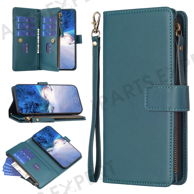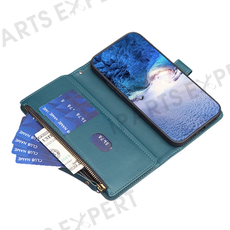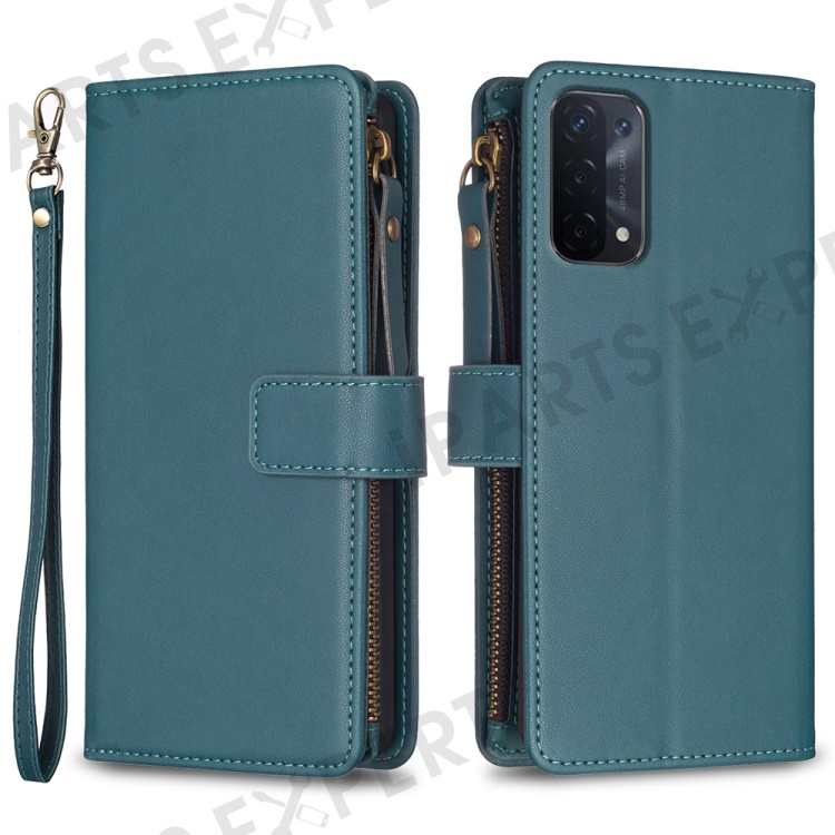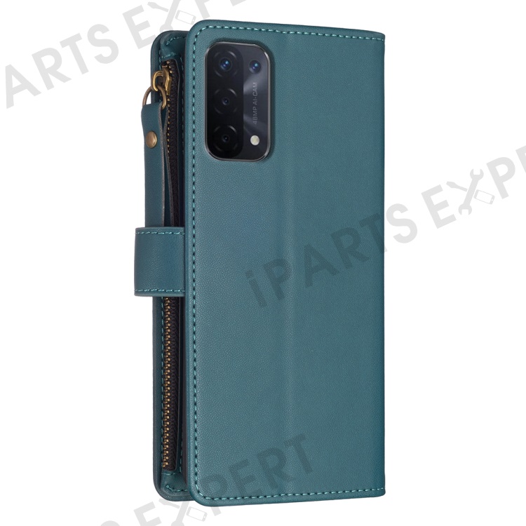 BF Style-19 for Oppo A74 / A93 / A54 5G Zipper Pocket PU Leather Phone Case Wallet Stand Cover - Green