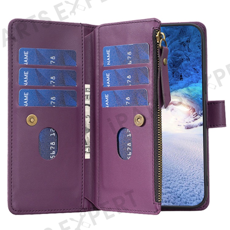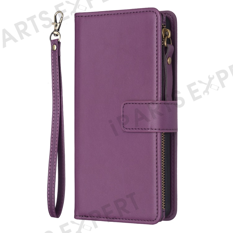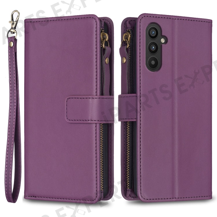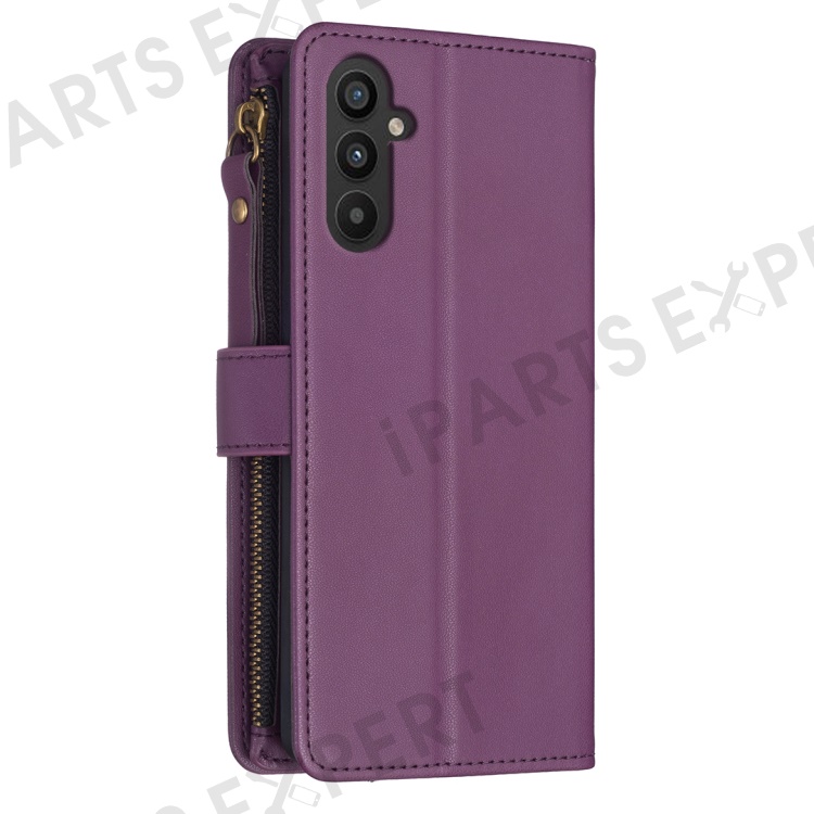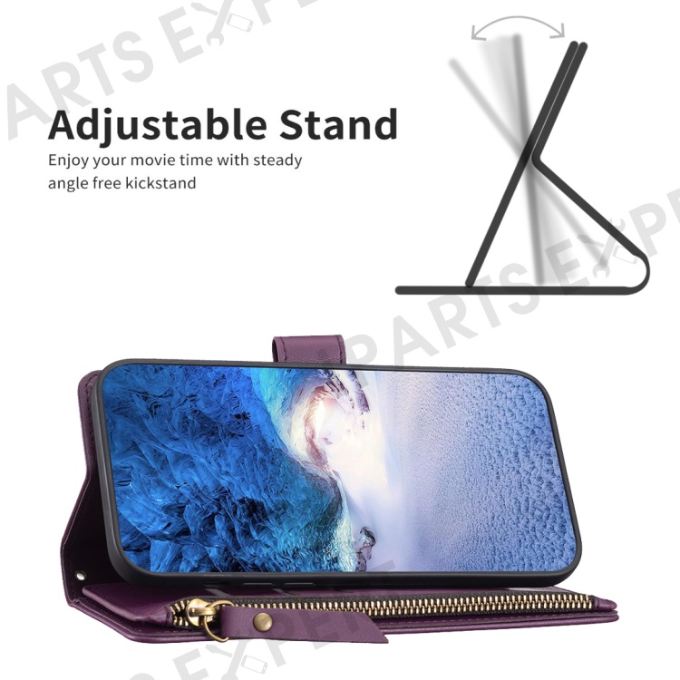 BF Style-19 For Samsung Galaxy A25 5G (Global) (161.0 x 76.5 x 8.3mm) Wallet Stand Flip Cover Zipper Pocket PU Leather Phone Case - Dark Purple