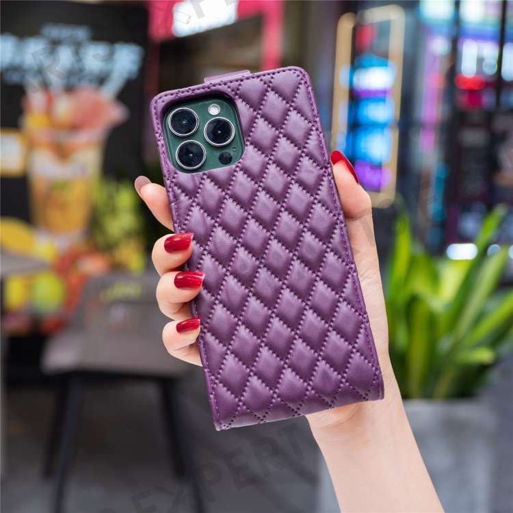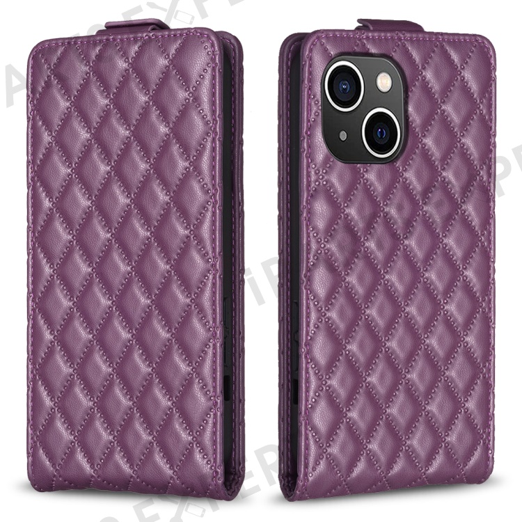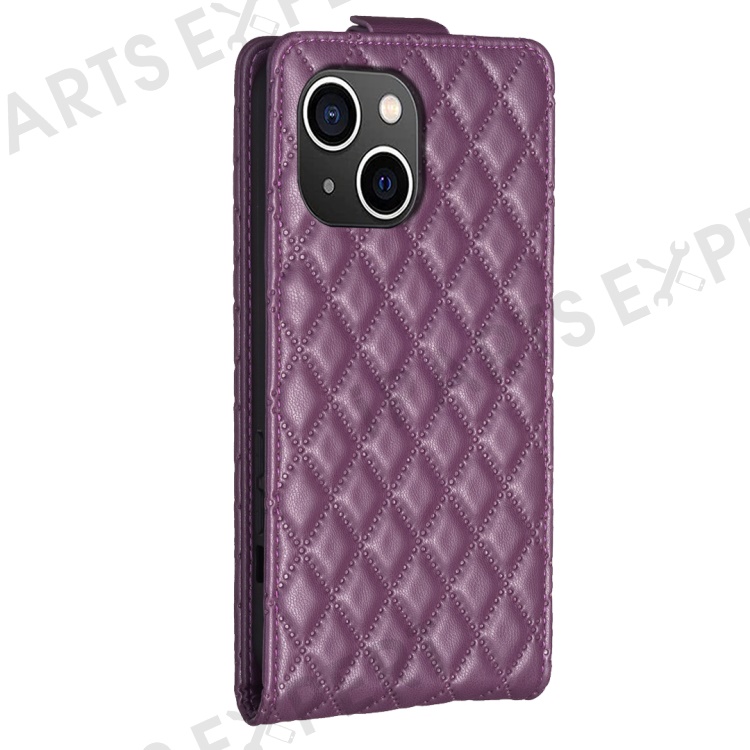 BF Style-30 Vertical Flip Shockproof Cover for iPhone 15 PU Leather Imprinted Phone Case - Dark Purple