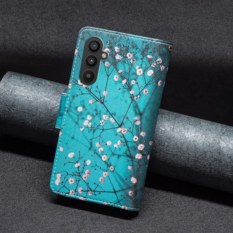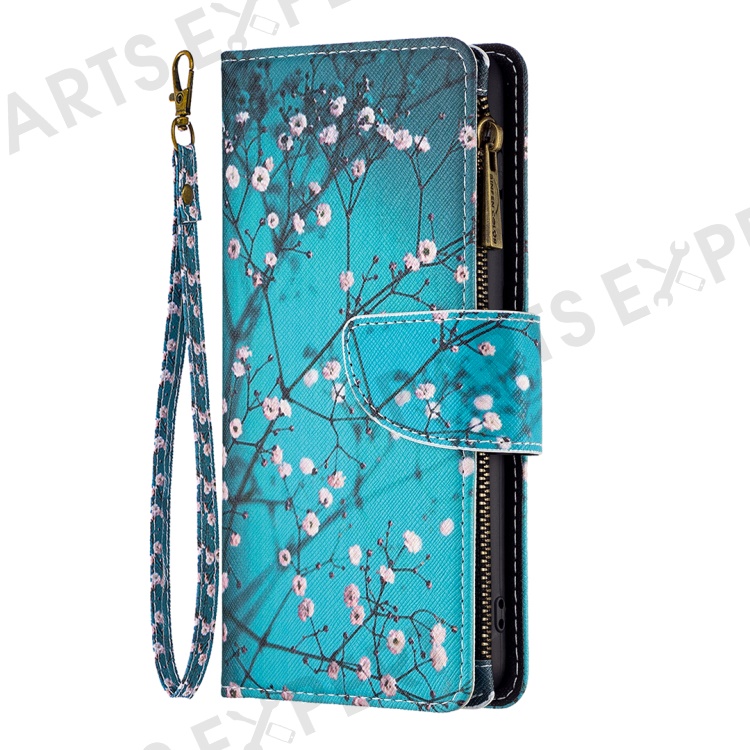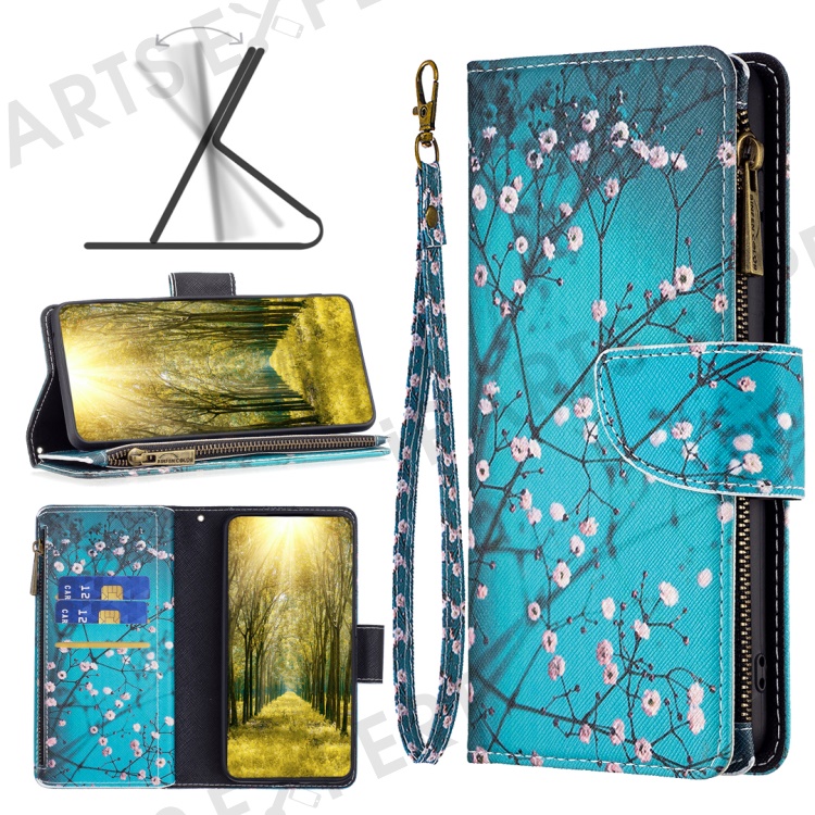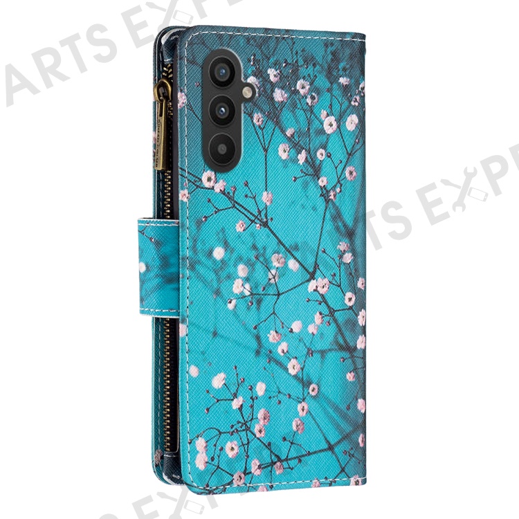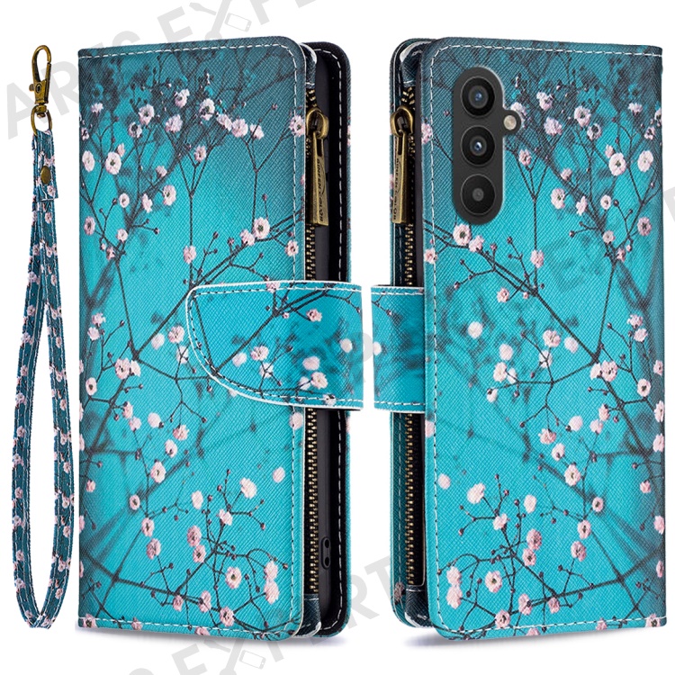 BF03 Leather Wallet Case for Samsung Galaxy A25 5G (Global) (161.0 x 76.5 x 8.3mm) Zipper Pocket Cover - Plum Blossom