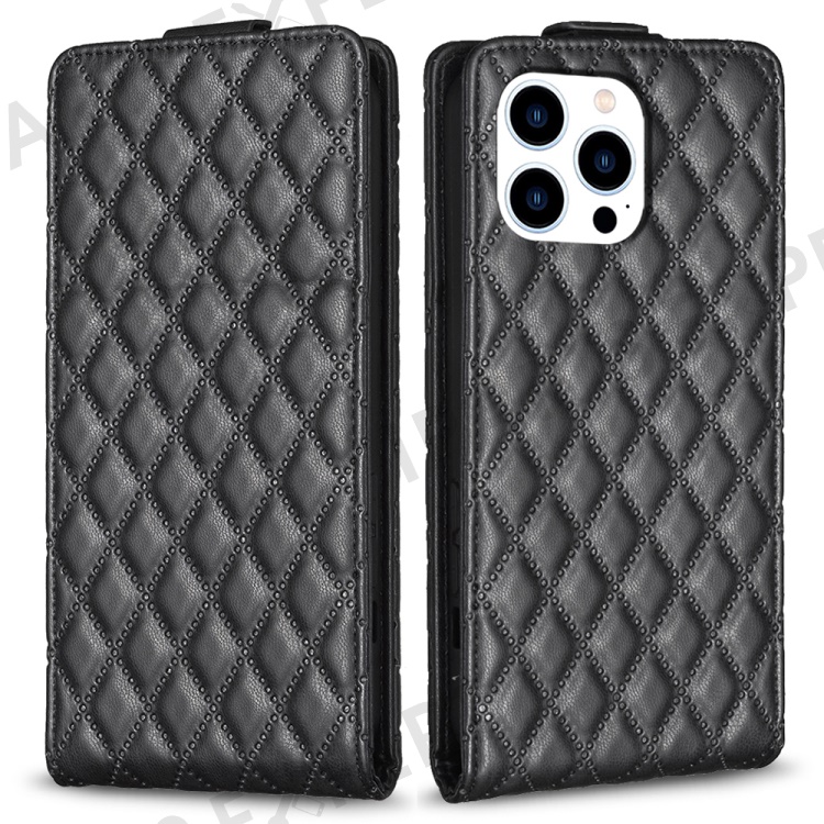 BF30 For iPhone 16 Pro Max Case Rhombus Grid Vertical Flip Leather Phone Cover - Black