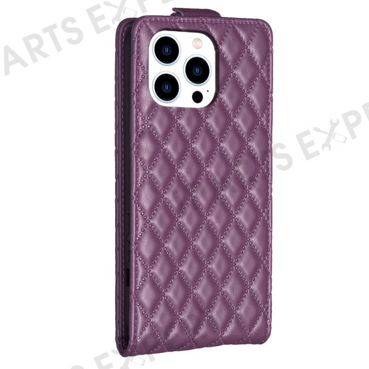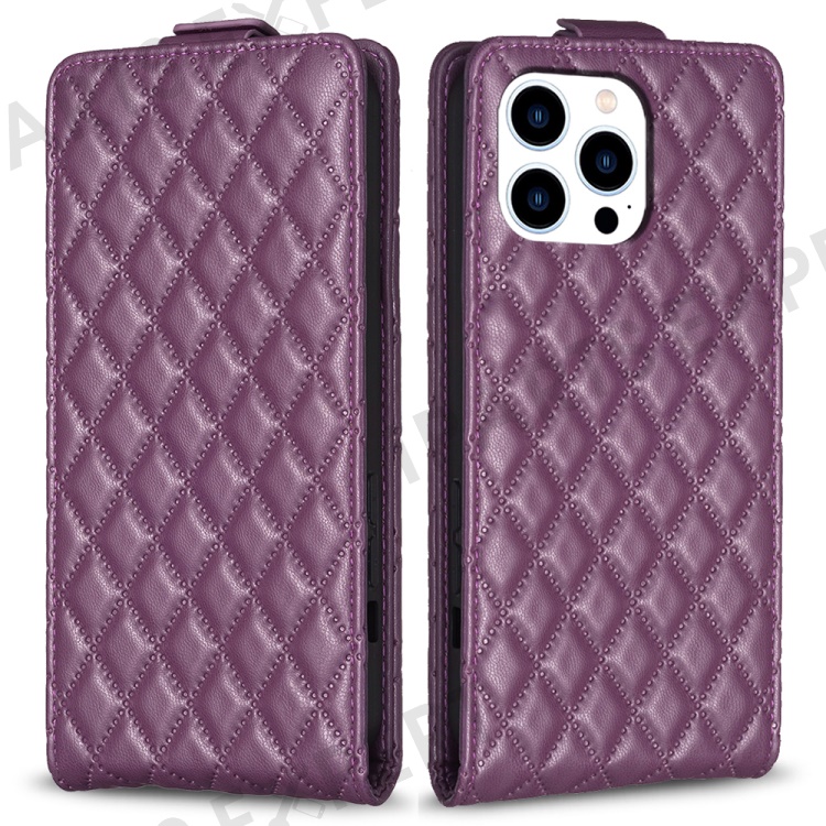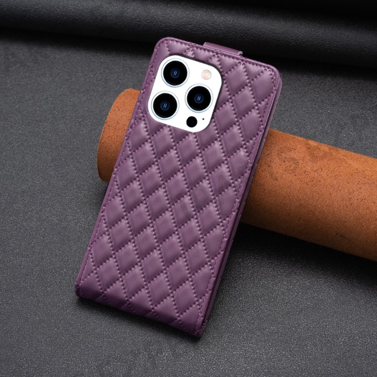BF30 For iPhone 16 Pro Max Case Rhombus Grid Vertical Flip Leather Phone Cover - Dark Purple