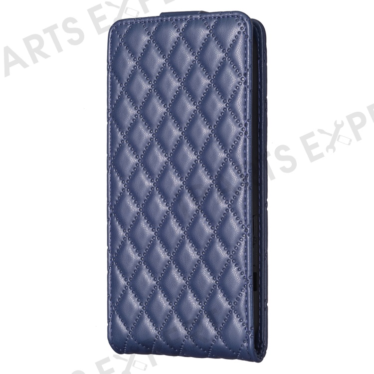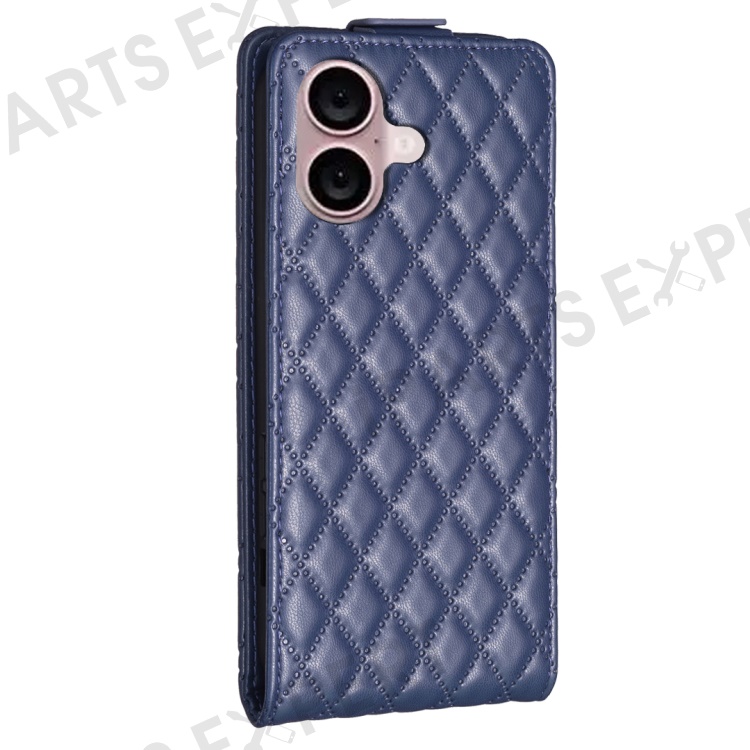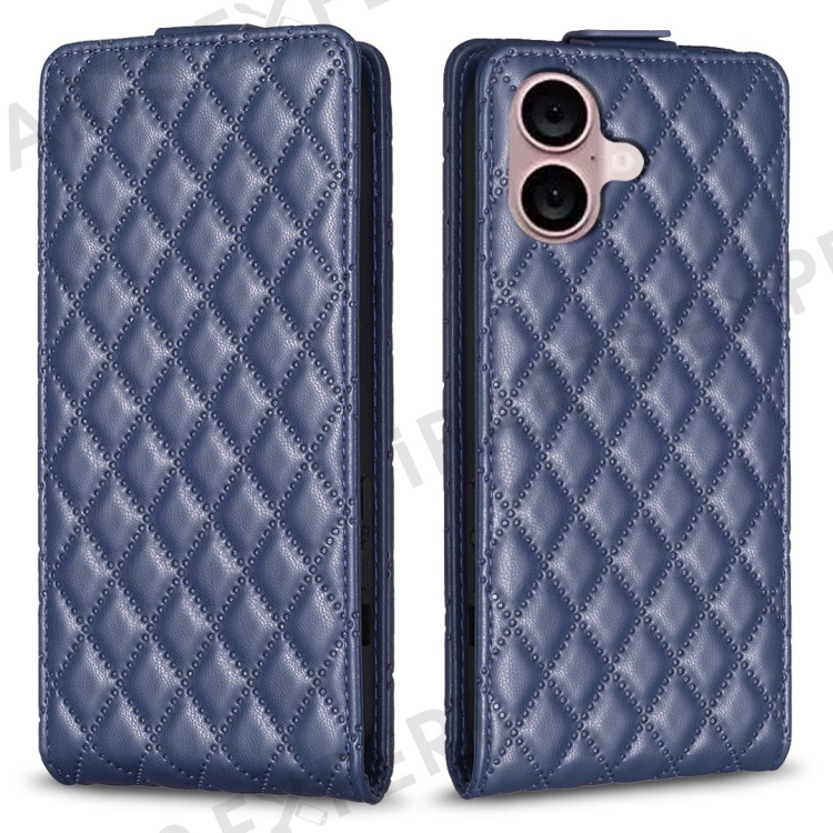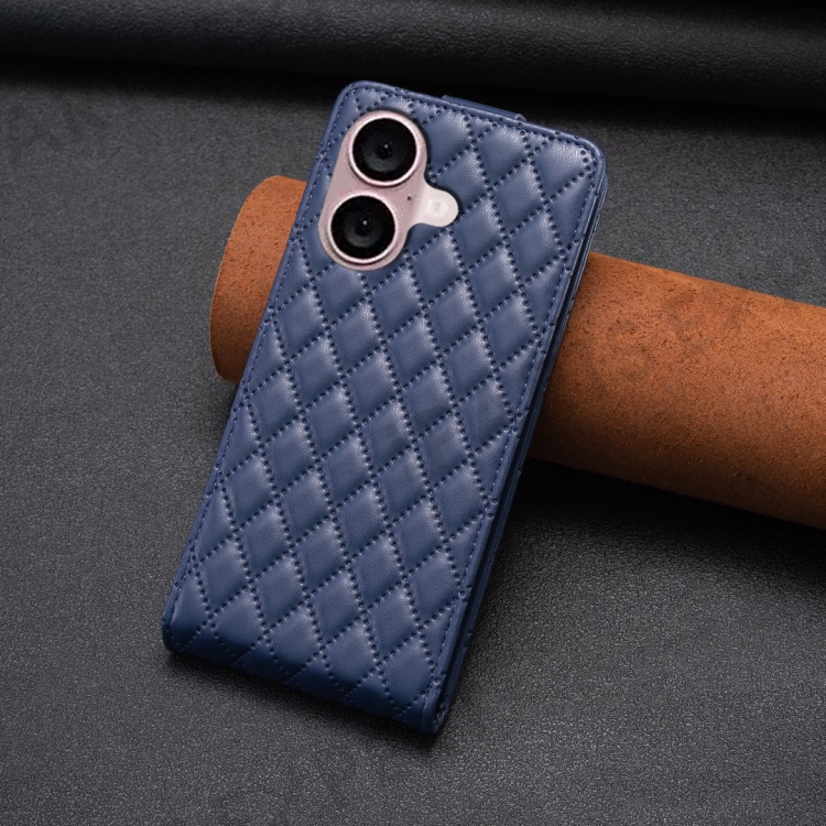 BF30 For iPhone 16 Vertical Flip Phone Case Rhombus Grid PU Leather Cell Phone Stand Cover - Blue