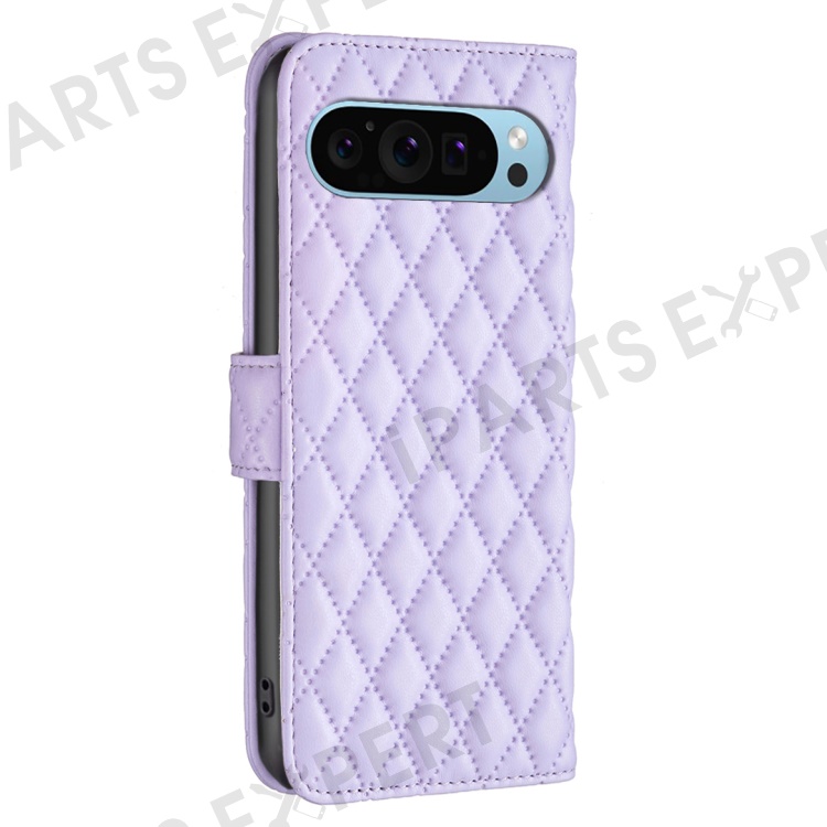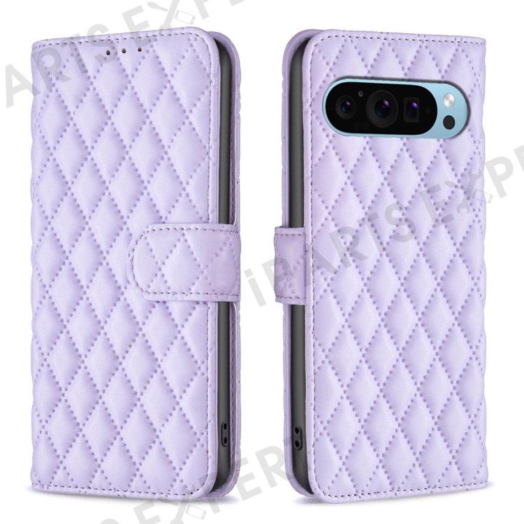 BINFEN COLOR BF Style-14 For Google Pixel 9 / Pixel 9 Pro Case PU Leather Rhombus Grid Phone Cover - Purple
