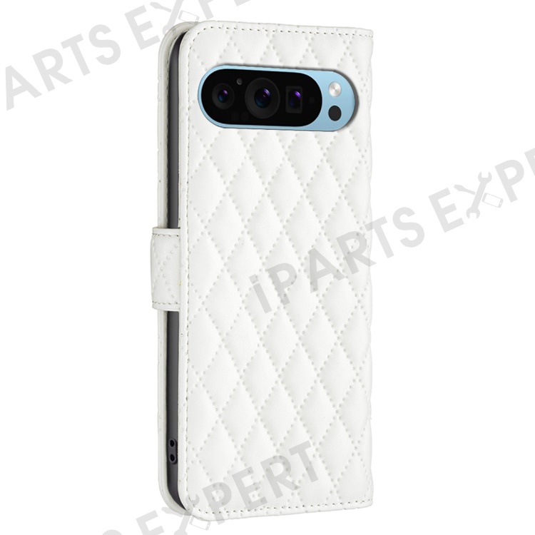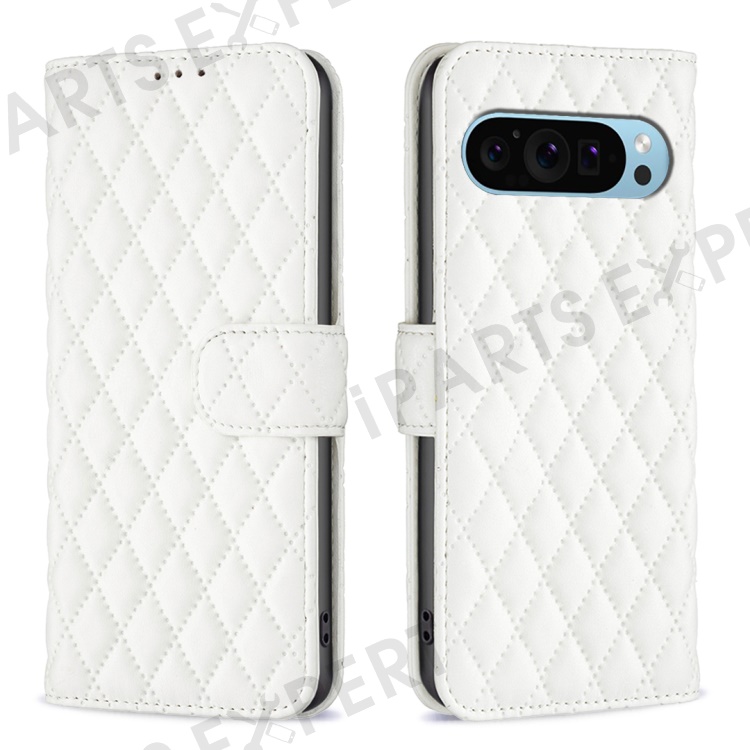 BINFEN COLOR BF Style-14 For Google Pixel 9 / Pixel 9 Pro Case PU Leather Rhombus Grid Phone Cover - White