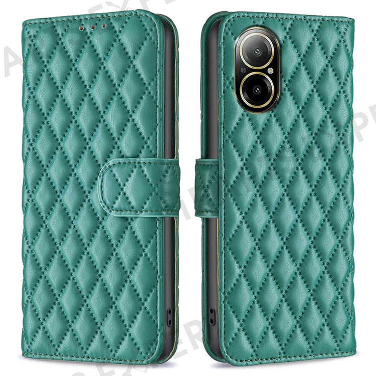 BINFEN COLOR BF Style-14 For Realme C67 4G Case Rhombus Grid Leather Scratch-proof Phone Shell - Green